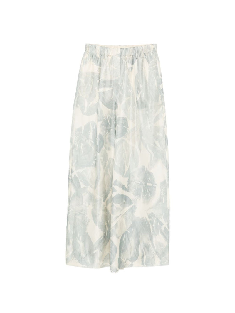I pantaloni dritti firmati Alysi sono un'esplosione di freschezza e stile botanico. Realizzati interamente in seta 100%, questi pantaloni si distinguono per l'evocativa stampa Foliage nelle delicate sfumature del beige e celeste, una combinazione cromatica che richiama i colori della terra e del cielo in perfetta armonia. La leggerezza della seta Made in Italy accarezza la pelle, offrendo un comfort ineguagliabile e una lucentezza sofisticata a ogni movimento.