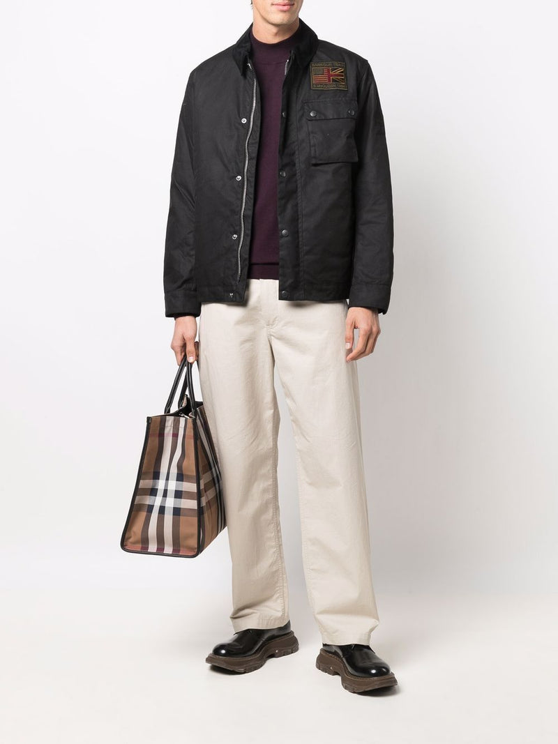 Diese Jacke im klassischen Barbour -Stil besticht durch einen hohen Kragen , eine Knopfleiste und lange Ärmel für Komfort und Schutz an kühleren Tagen. Die Brusttasche mit Patte und der gerade Saum runden das praktische und durchdachte Design ab, während das Futter aus Polyamid und Polyester für Strapazierfähigkeit und Langlebigkeit sorgt.