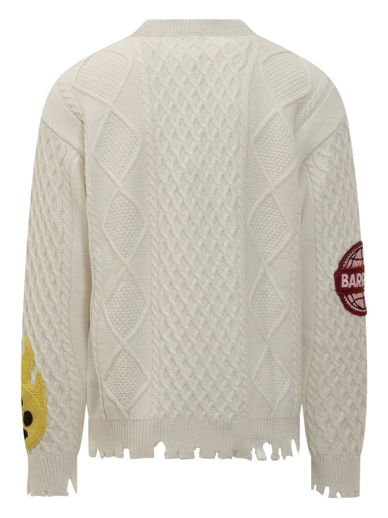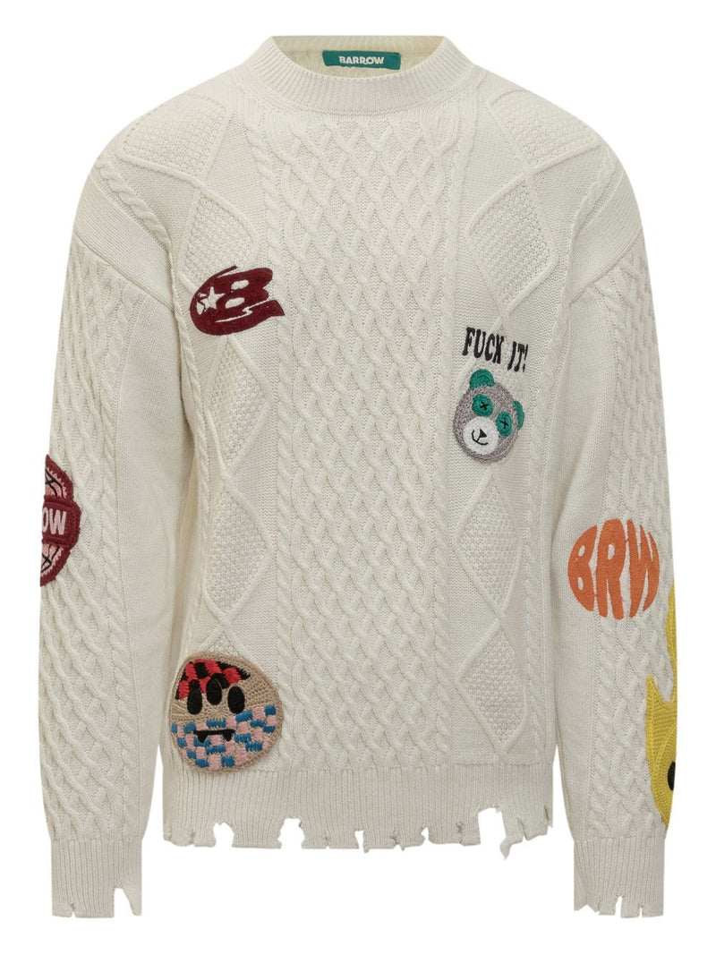 Es wird in Beige angeboten und besticht durch seine Applikationsdetails und den Used-Look , die ihm einen authentischen und modernen Reiz verleihen. Der Rundhalsausschnitt , der Zopfmusterstrick und die langen Ärmel vervollständigen ein Design mit einem urbanen und entspannten Geist, typisch für den Barrow-Stil.