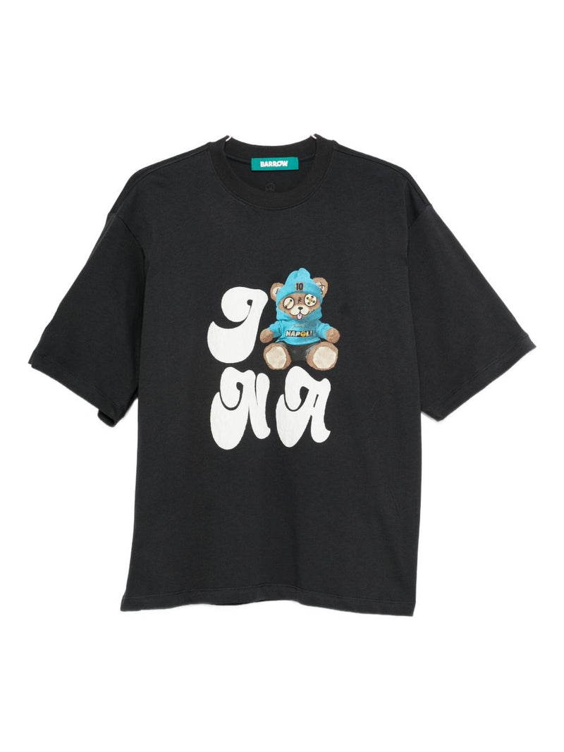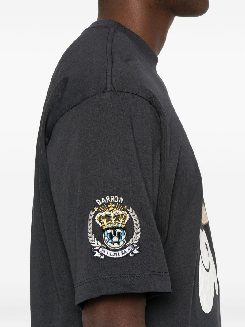 Es wird in Schwarz angeboten und verfügt über einen klassischen Rundhalsausschnitt , kurze Ärmel und ein auffälliges, unverwechselbares Grafikdruckdesign , das typisch für die Ästhetik von Barrow ist.