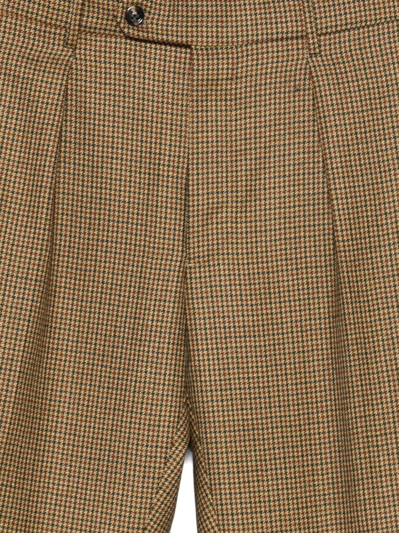 Il colore ocra e il raffinato motivo pied-de-poule donano un tocco distintivo e sofisticato, perfetto per chi ama distinguersi con gusto.