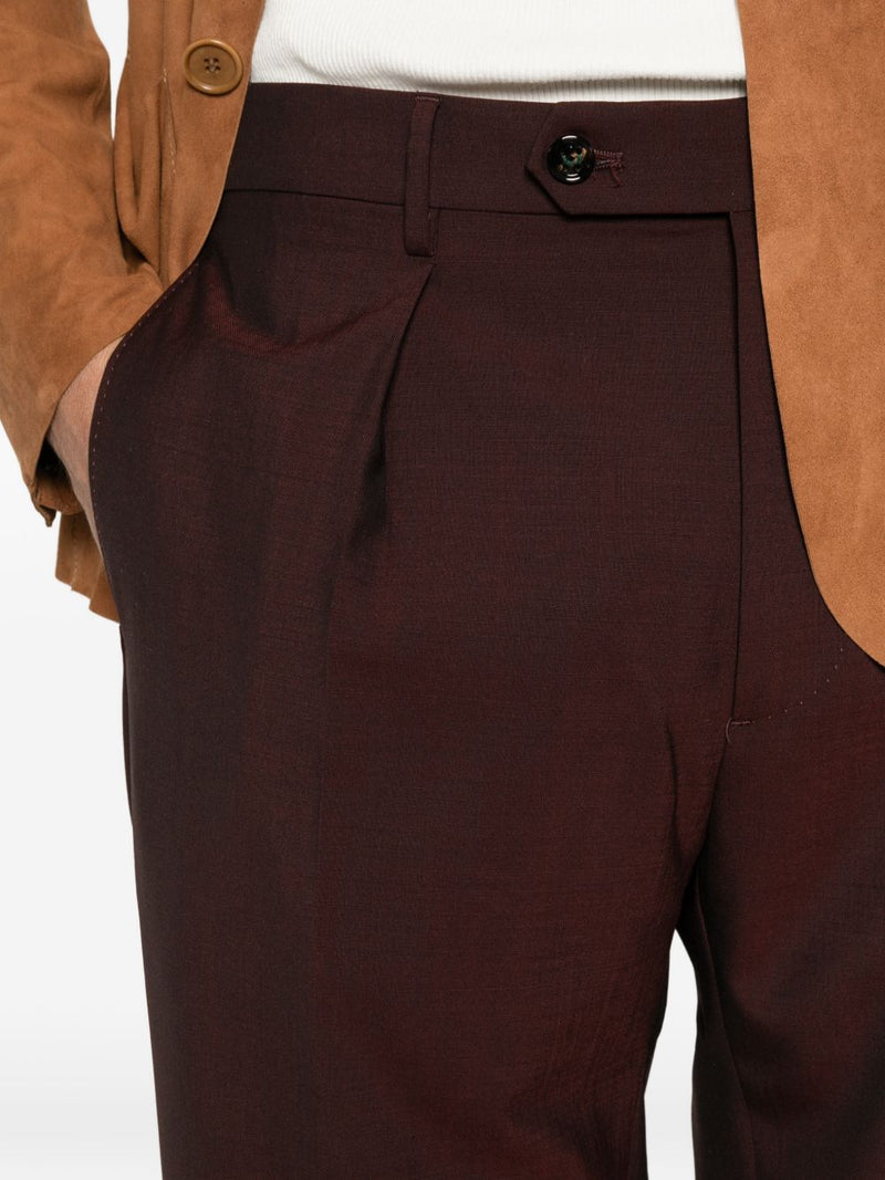 Eleganti e dal carattere distintivo, i pantaloni Chiaia con pence di Berwich in colore bordeaux rappresentano un capo sartoriale raffinato, perfetto per look formali e smart casual.