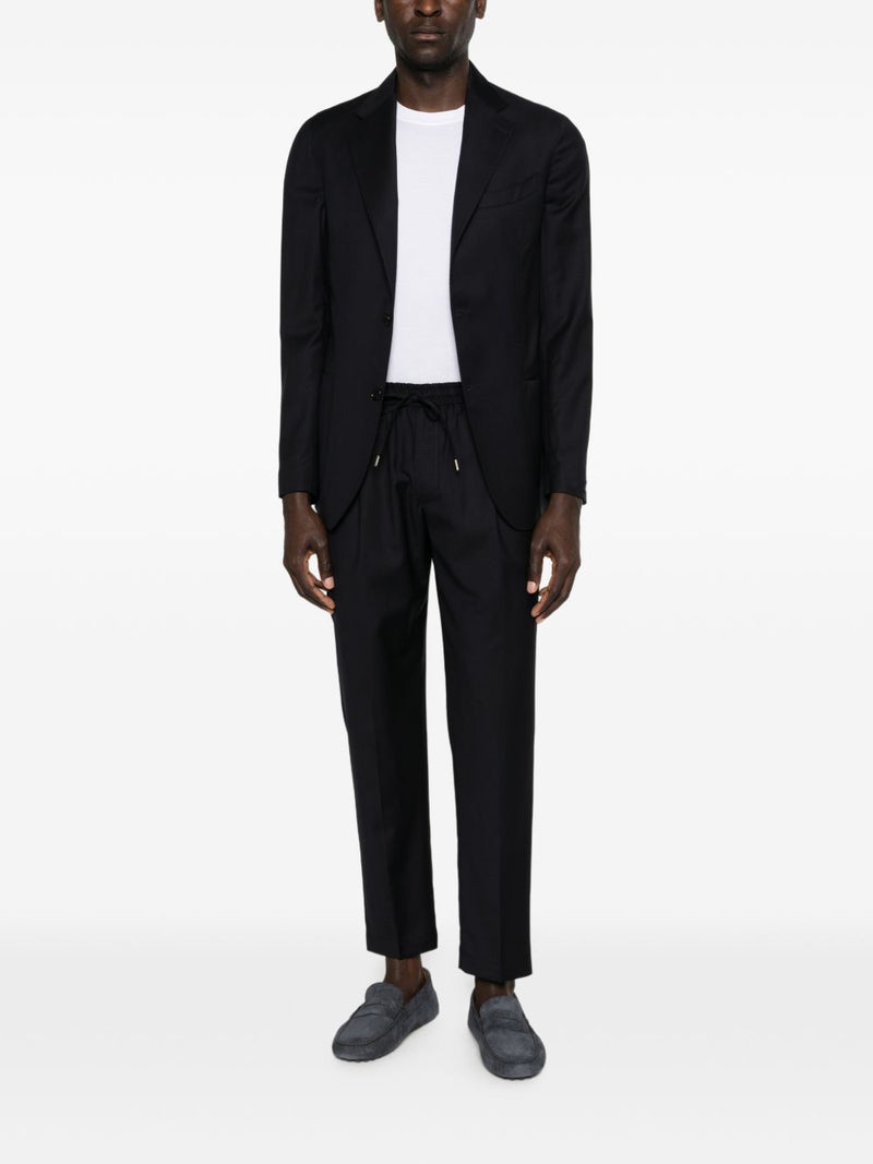 Il modello si distingue per i dettagli classici della tradizione formale: il rever a lancia (notched lapel) e la chiusura frontale con bottoni definiscono un design pulito e autorevole. Le maniche lunghe con polsini abbottonati e le funzionali tasche frontali completano la struttura della giacca, mentre la fodera interna in 100% cotone garantisce il massimo della traspirabilità e del comfort sulla pelle. Che sia indossato per un evento formale o per un business meeting di alto livello, questo abito di Briglia 1949 rimane un pilastro di qualità artigianale e stile sofisticato.