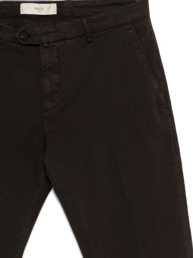 Sie werden in Dunkelbraun angeboten und verfügen über einen Klappen- und Knopfverschluss , Gürtelschlaufen und seitliche Innentaschen , während die Leistentaschen auf der Rückseite das Design mit einer maßgeschneiderten Note abrunden. Sie sind perfekt für einen lässig-schicken Look oder formellere Outfits und verkörpern die Qualität und den zeitlosen Stil von Briglia 1949 .