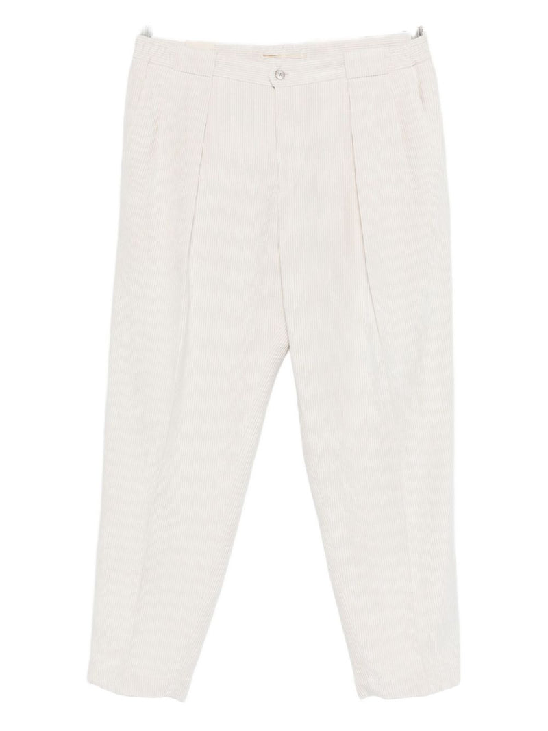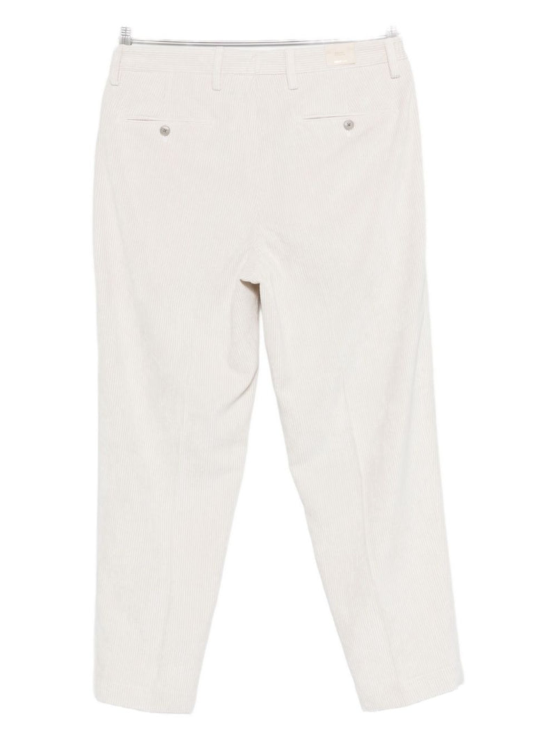 Erhältlich in Beige , bestehen sie aus Cord mit Retro-Charme, einem Knopf- und Klappverschluss sowie Gürtelschlaufen . Die Leistentaschen auf der Rückseite runden das Design mit klassischem Stil und Liebe zum Detail ab. Perfekt für lässig-schicke oder formelle Looks, verkörpern sie die Qualität und Handwerkskunst von Made in Italy von Briglia 1949 .