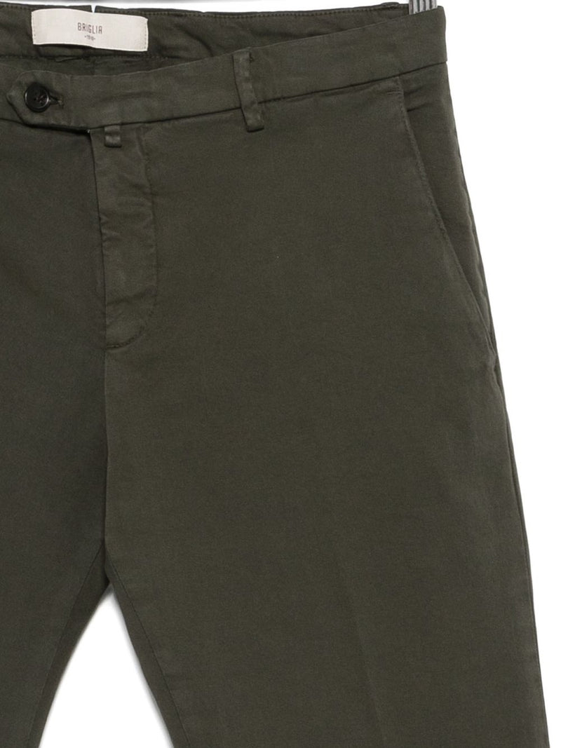Sie sind in Grün erhältlich und verfügen über einen Hosenschlitz mit Knopfleiste , Gürtelschlaufen und seitliche Leistentaschen , während die Leistentaschen hinten das Design mit einer maßgeschneiderten Note abrunden. Diese vielseitigen und raffinierten Chinos verkörpern die Liebe zum Detail und die Qualität der in Italien hergestellten Handwerkskunst von Briglia 1949 .
