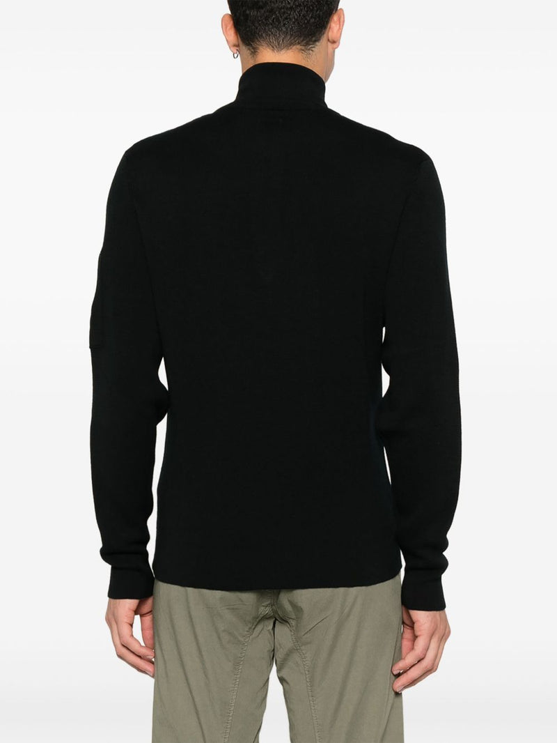 Der Pullover ist in Schwarz erhältlich und verfügt über einen Frontreißverschluss , lange Ärmel und ein Logo-Detail , das ihm eine unverwechselbare Note verleiht und die Markenidentität symbolisiert. Dank der sauberen Verarbeitung und des schlichten Schnitts ist er für jeden Anlass geeignet – von der Freizeit bis hin zu eleganten Outfits. Wie immer empfiehlt CP Company, Accessoires vor dem Waschen zu entfernen, um die Qualität zu erhalten.