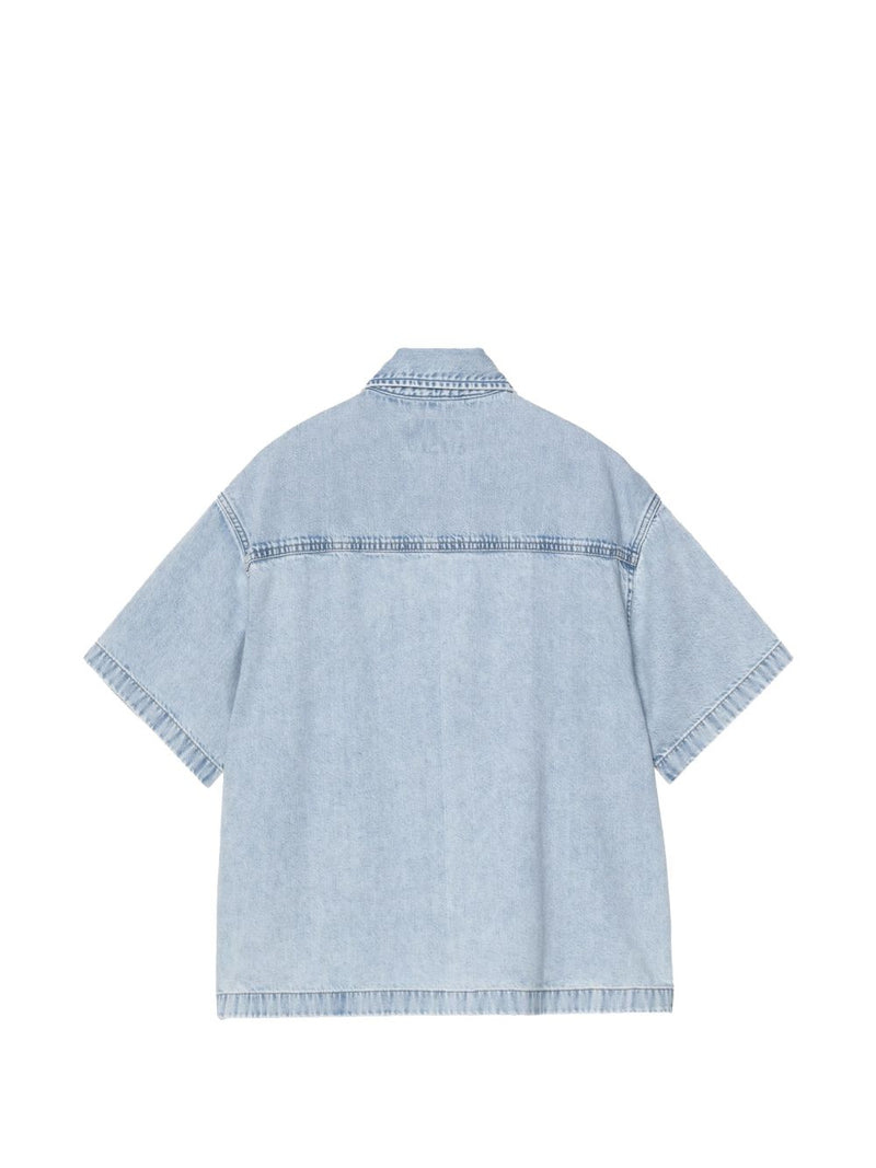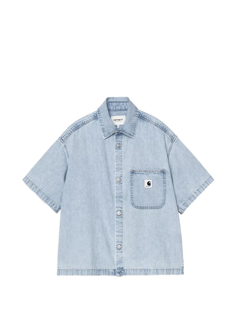La camicia in denim blu da donna firmata Carhartt WIP propone una linea moderna e rilassata, con maniche corte e abbottonatura frontale a pressione. Il tessuto in jeans lavato valorizza il design essenziale e la silhouette leggermente ampia.