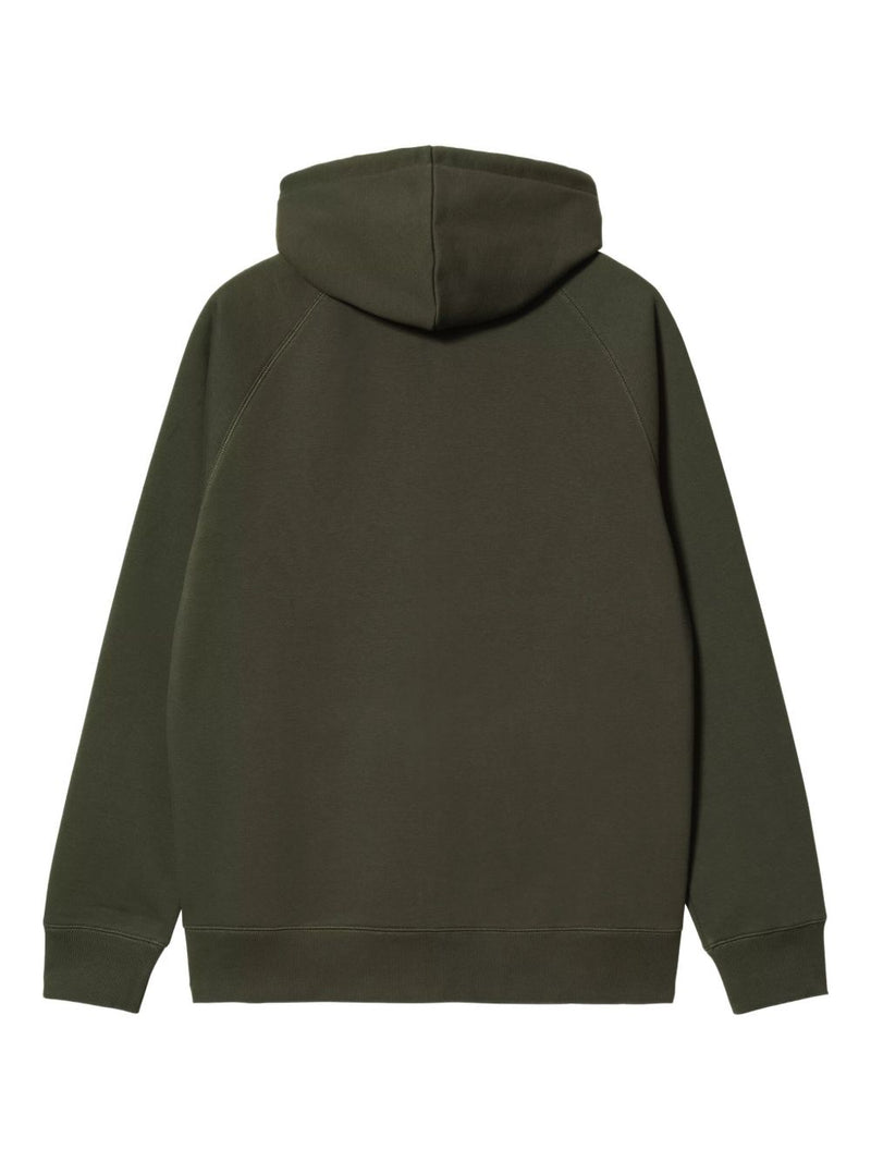 Es wird in Olivgrün angeboten und verfügt über Raglanärmel , einen Reißverschluss vorne , eine verstellbare Kapuze mit Kordelzug und zwei Seitentaschen . Gerippte Bündchen und Saum vervollständigen das Design und bieten einen sportlichen und modernen Look von Carhartt WIP .