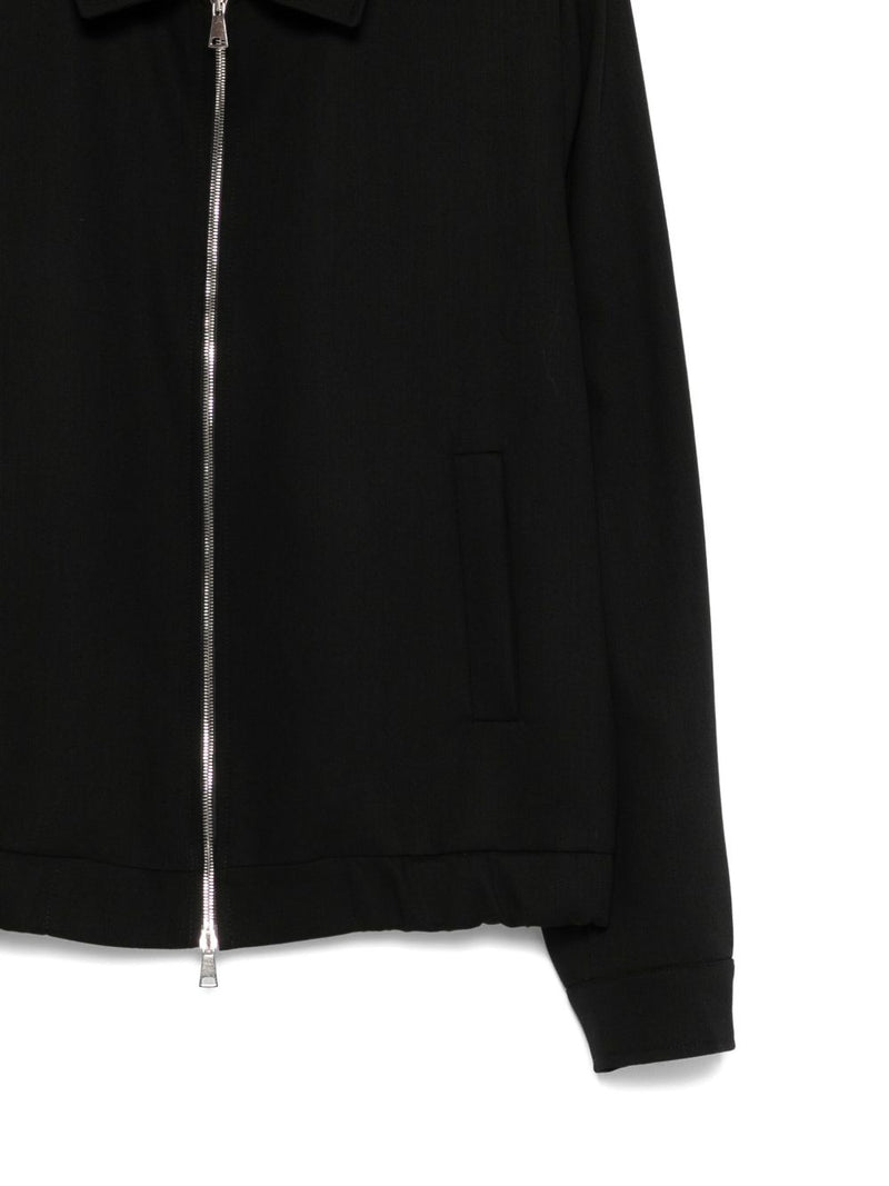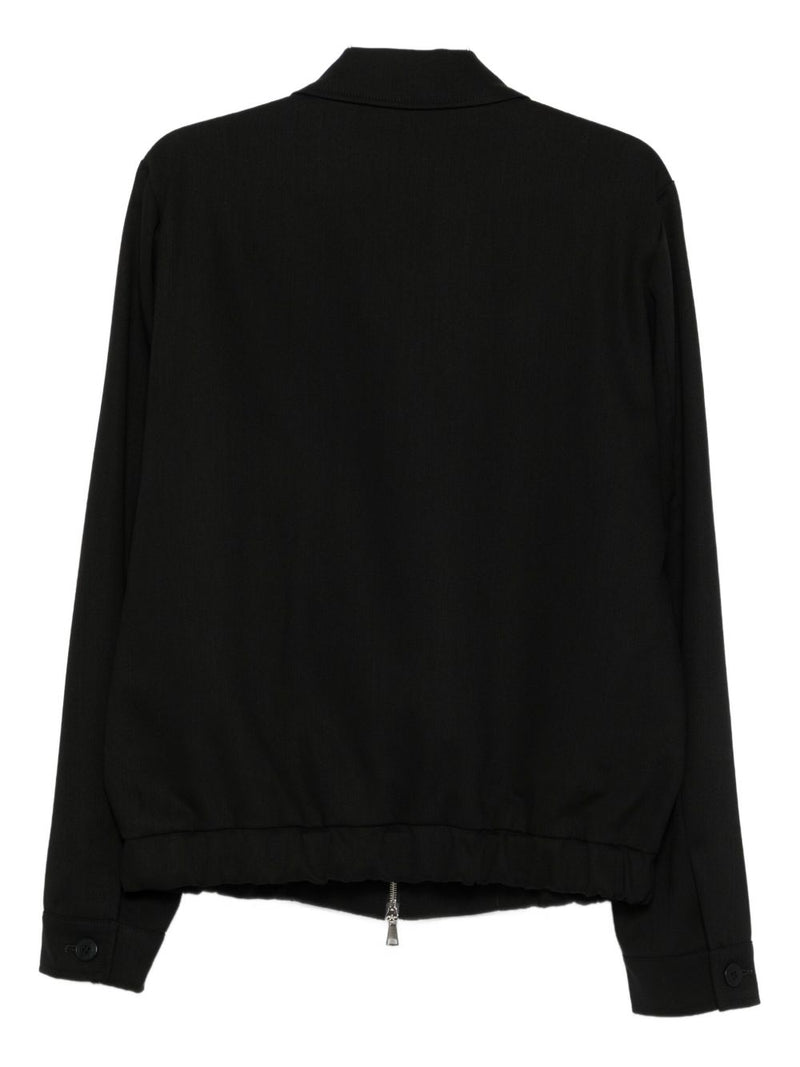 Das schwarze Oberteil besticht durch einen klassischen Kragen , einen Reißverschluss vorne und Leistentaschen . Lange Ärmel und ein elastischer Saum runden das vielseitige Design ab, das sich ideal für legere oder elegante Freizeitoutfits eignet.