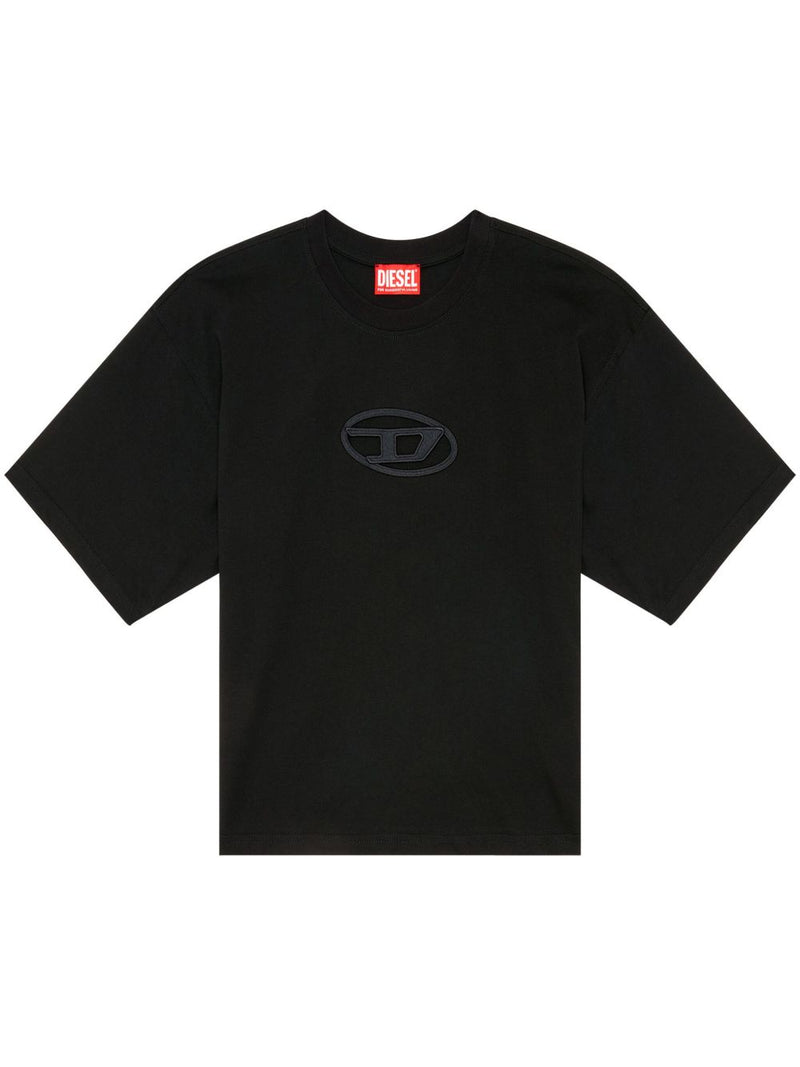 Diesel Damen-T-Shirt mit ausgeschnittenem Logo und weiten Ärmeln, schwarz