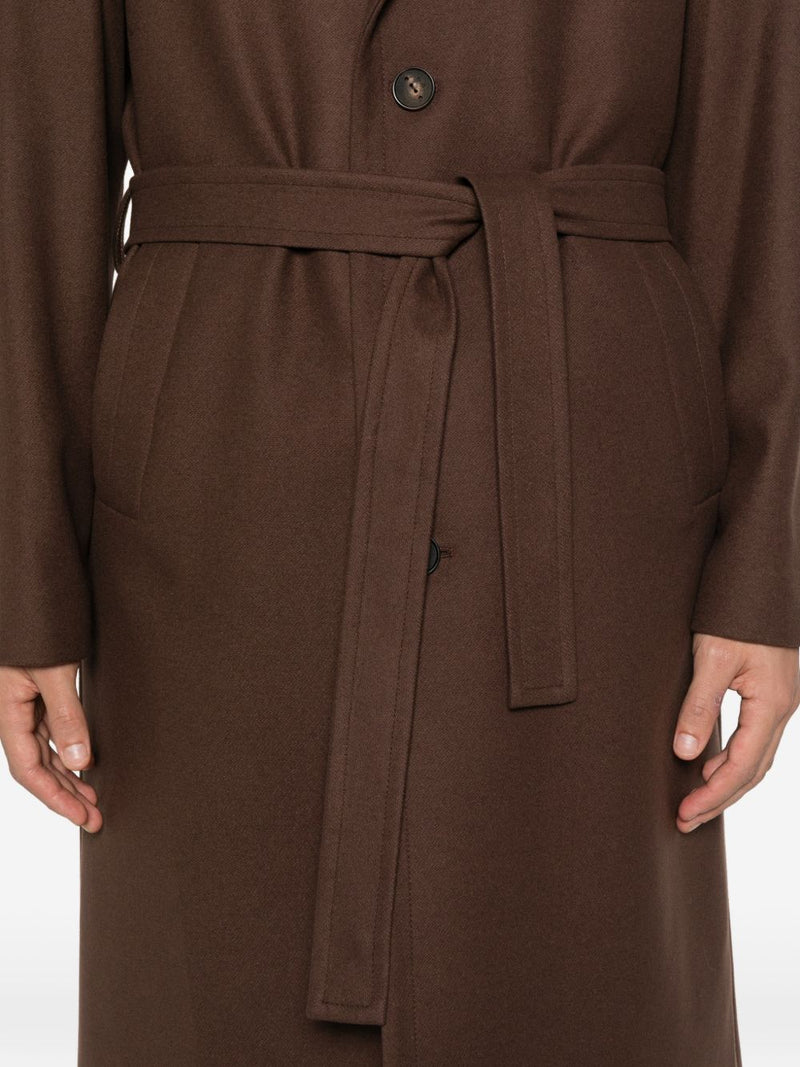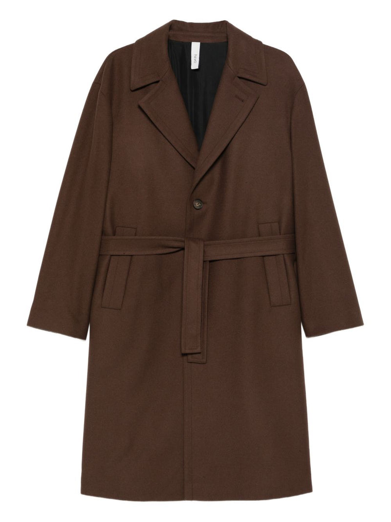 La chiusura a bottoni e i revers classici valorizzano il design tradizionale del modello, mentre la cintura permette di definire la linea del punto vita, conferendo un aspetto più elegante e personalizzato. Le tasche a filetto frontali aggiungono praticità senza alterare la pulizia del taglio, mentre le maniche lunghe completano un profilo essenziale e ben bilanciato.