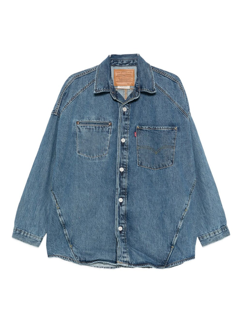 Es wird in Indigo angeboten und verfügt über einen Knopfverschluss vorne , eine Paspeltasche auf der Brust und eine aufgesetzte Tasche , die seinen authentischen Charakter betonen. Vielseitig und zeitlos, passt es perfekt zu Jeans oder Freizeithosen für einen Look mit urbanem Charme.