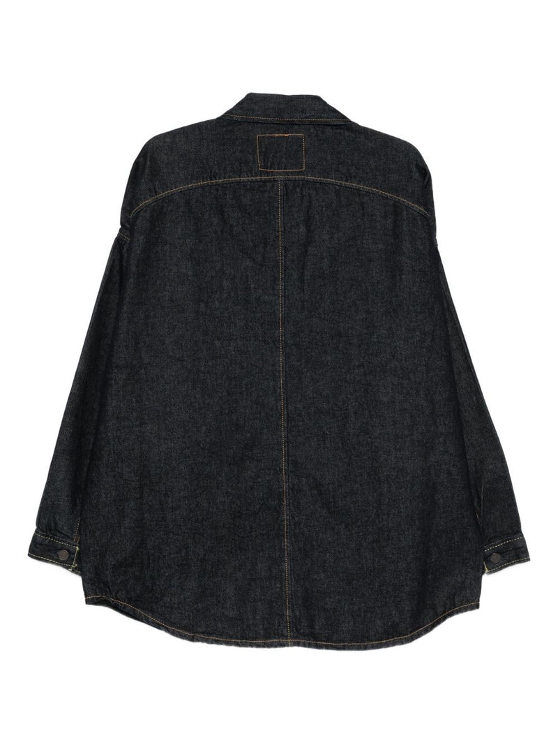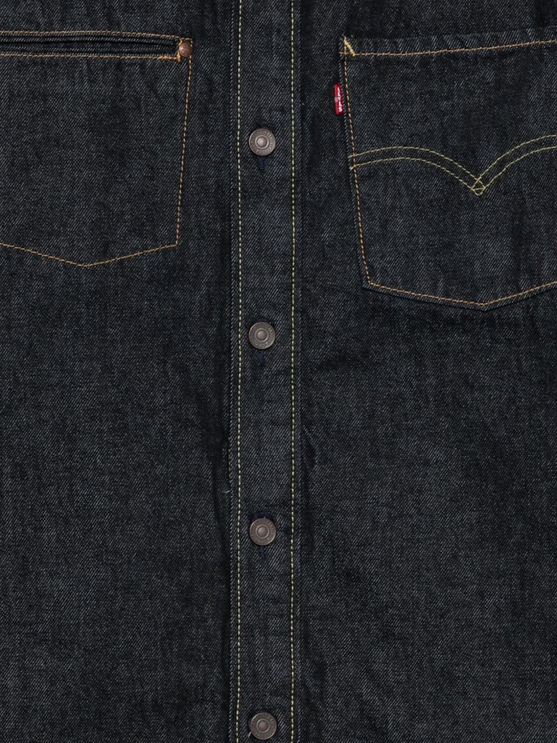 Es wird in Jeansblau angeboten und verfügt über eine Knopfleiste vorne , zwei aufgesetzte Brusttaschen und lange Ärmel mit geknöpften Manschetten . Der geschwungene Saum und die für Levi's typische Liebe zum Detail machen dieses Hemd zu einem vielseitigen Kleidungsstück, das sich perfekt allein oder als Überhemd tragen lässt.