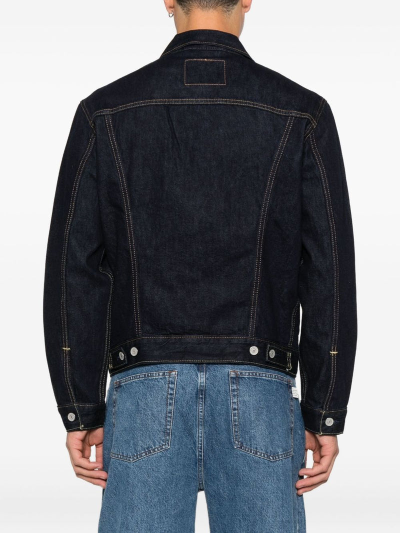 Es wird in Indigo angeboten, verfügt über einen Knopfverschluss vorne und lange Ärmel und hat die klassische normale Passform, die den Trucker-Stil berühmt gemacht hat. Es lässt sich perfekt über T-Shirts oder leichten Pullovern tragen und ist ein vielseitiges und unverzichtbares Stück für einen authentischen Denim-Look.