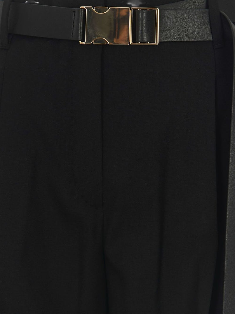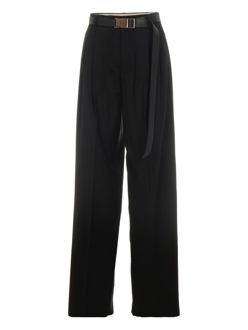 Sie sind in Schwarz erhältlich, haben eine hohe Taille , einen geraden Schnitt und ein plissiertes Design , das das Bein betont. Der Schnallenverschluss und der geknotete Gürtel verleihen einen Hauch von Stil und Weiblichkeit und machen dieses Stück perfekt für Tages- oder Abendoutfits.