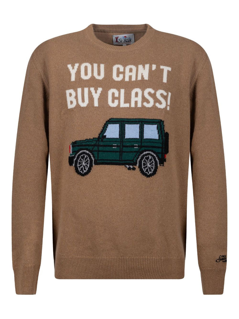 Il maglione You Can’t Buy Class di MC2 Saint Barth combina ironia, stile e qualità dei materiali in un capo perfetto per la stagione fredda. La stampa grafica con auto, protagonista del design, richiama lo spirito giocoso e distintivo del brand, aggiungendo un tocco di personalità a un modello dal taglio classico.