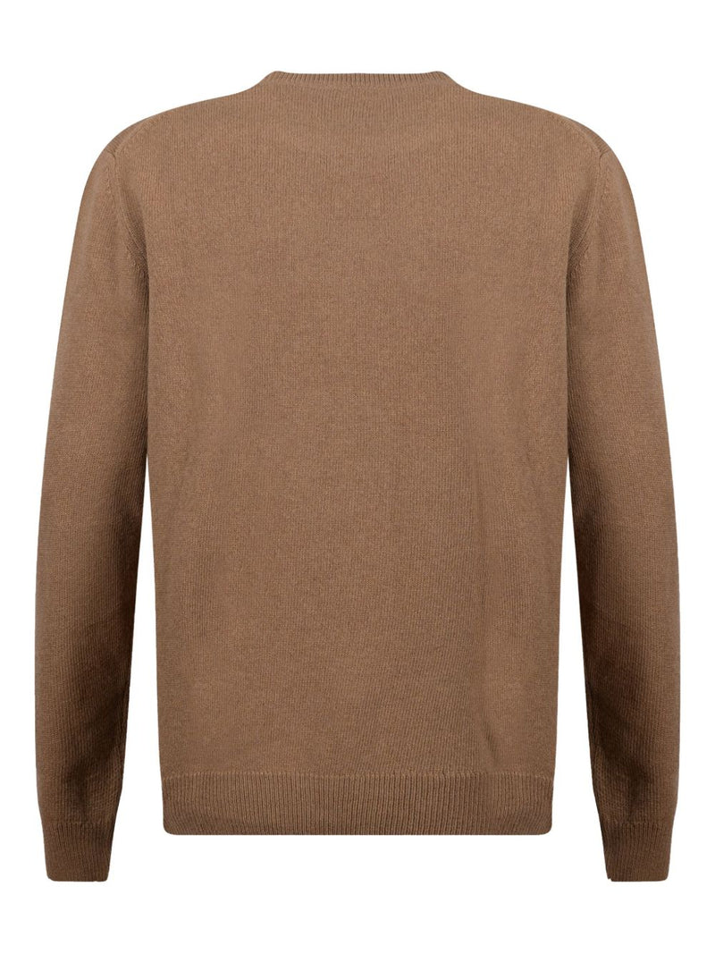 La tonalità marrone, calda e versatile, valorizza la grafica e rende il capo adatto a look casual e invernali. La morbida miscela di lana (35%), viscosa (30%), cashmere (20%) e poliammide (15%) assicura comfort, calore e una piacevole sensazione di morbidezza sulla pelle. Il girocollo, le maniche lunghe, e l’orlo e polsini a coste donano struttura e definiscono una silhouette tradizionale e accogliente.
