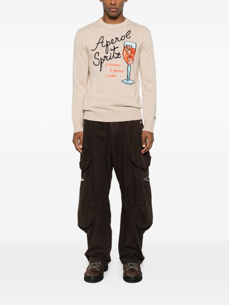 Il maglione Aperol Spritz di MC2 Saint Barth è un capo morbido, caldo e moderno, caratterizzato da una grafica stampata che aggiunge personalità e un tocco distintivo al look. Realizzato in una soffice miscela di lana (40%), viscosa (25%), poliammide (25%) e cashmere (10%), garantisce comfort e leggerezza ideali per la stagione.