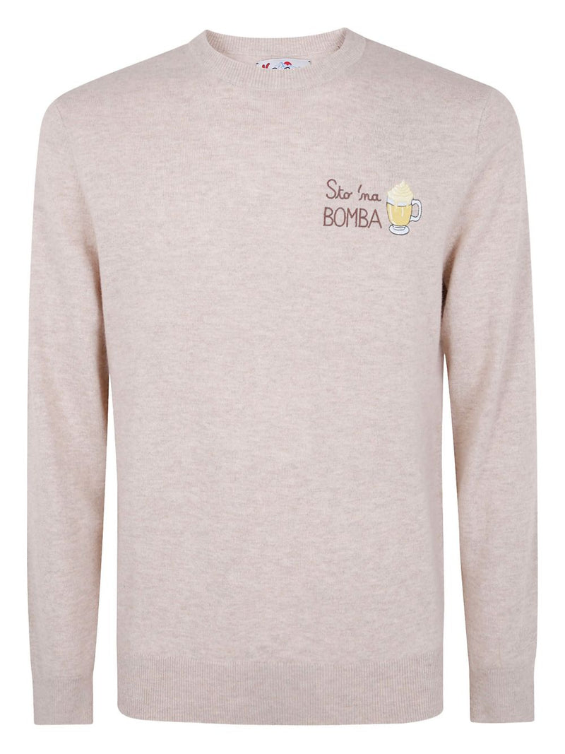 Il maglione con ricamo Sto' Na Bomba di MC2 Saint Barth combina eleganza contemporanea e dettagli artigianali, grazie al caratteristico design ricamato che dona personalità e un tocco distintivo al modello. La tonalità beige chiaro, luminosa e versatile, valorizza la lavorazione e rende il capo facilmente abbinabile ai look invernali.