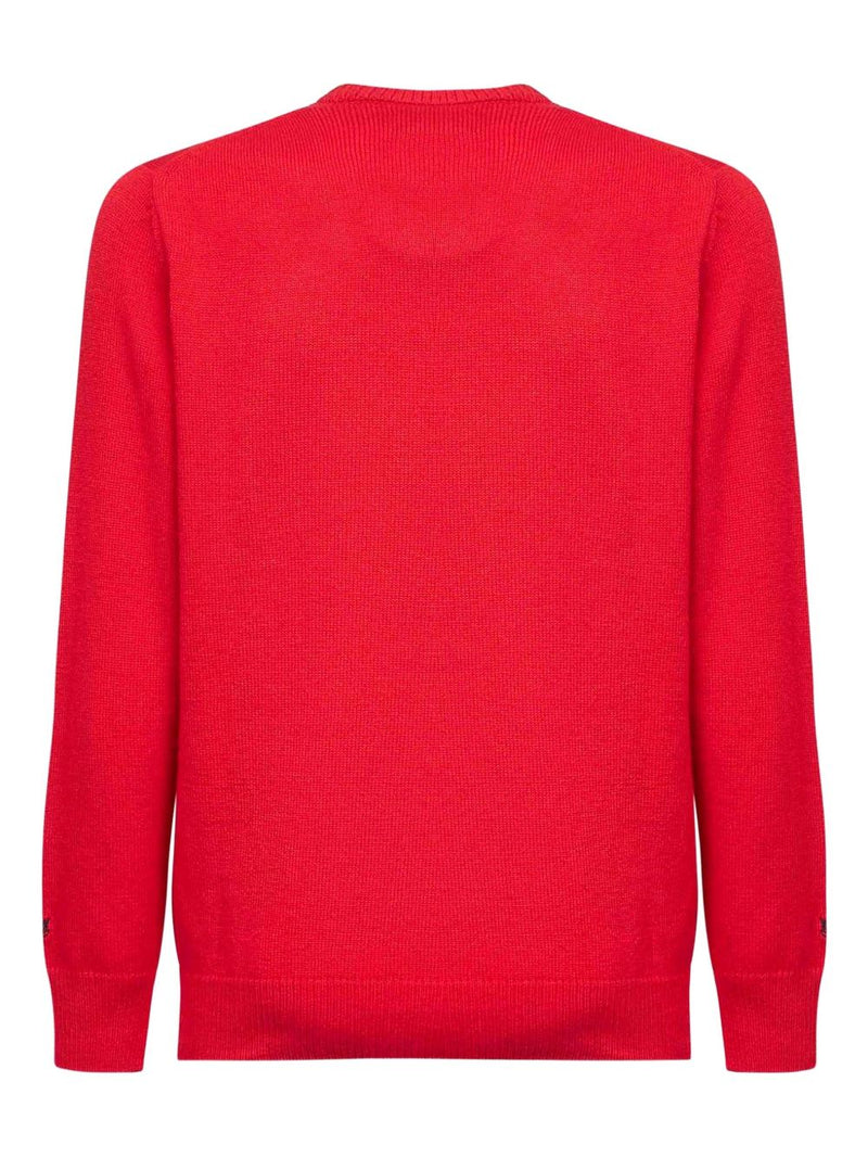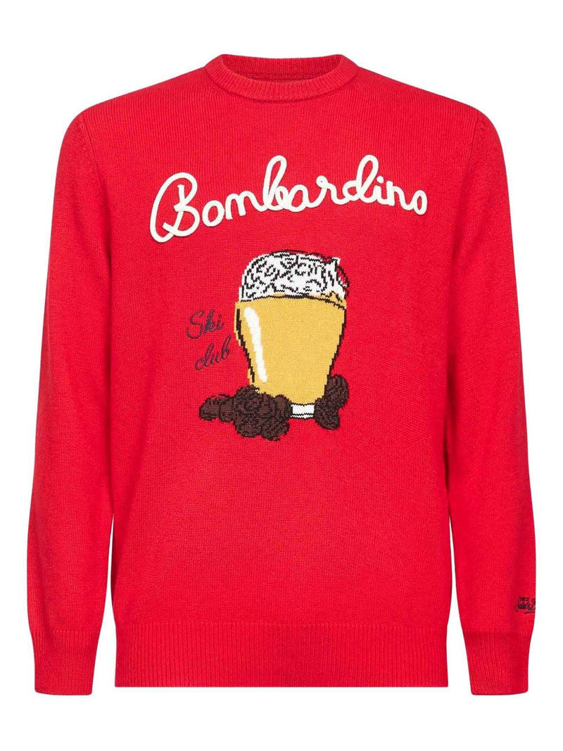 La tonalità rosso accesa e brillante fa da sfondo al motivo a intarsio e alla scritta ricamata, elementi iconici che richiamano l’atmosfera delle vacanze sulla neve e lo stile playful tipico del brand. Il design presenta girocollo a coste, maniche lunghe, orli a coste e una costruzione morbida, ideale per outfit casual chic o per aggiungere un tocco di allegria ai look quotidiani.