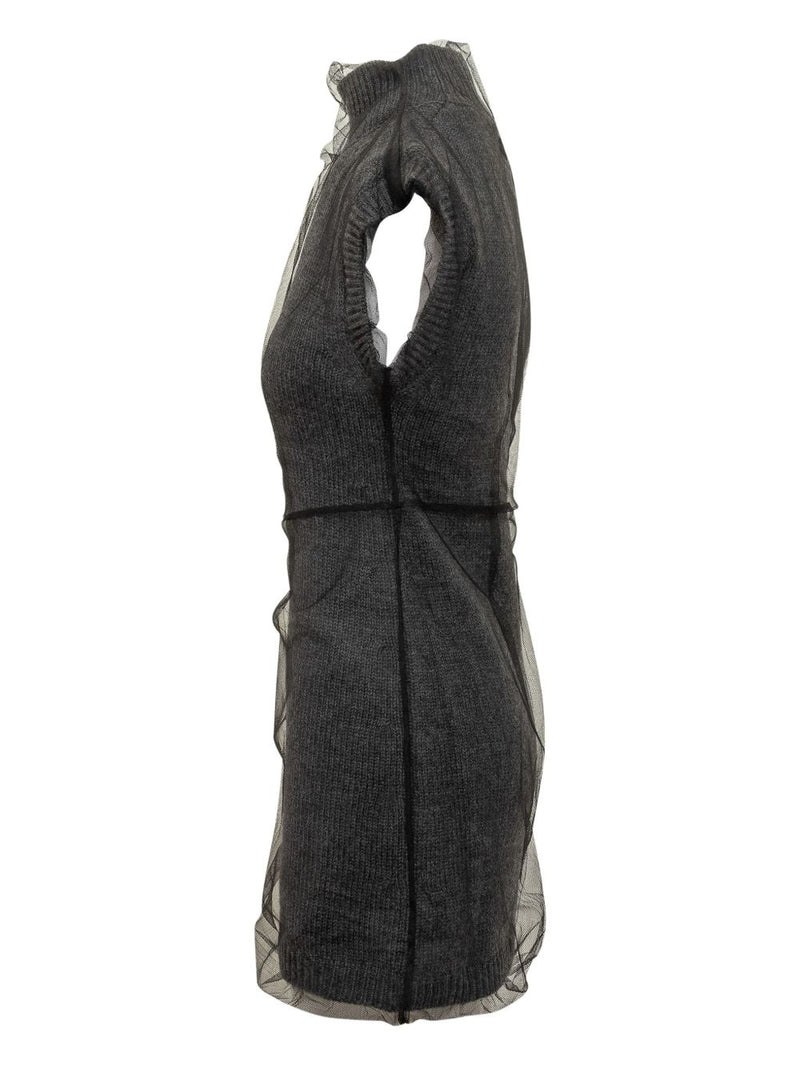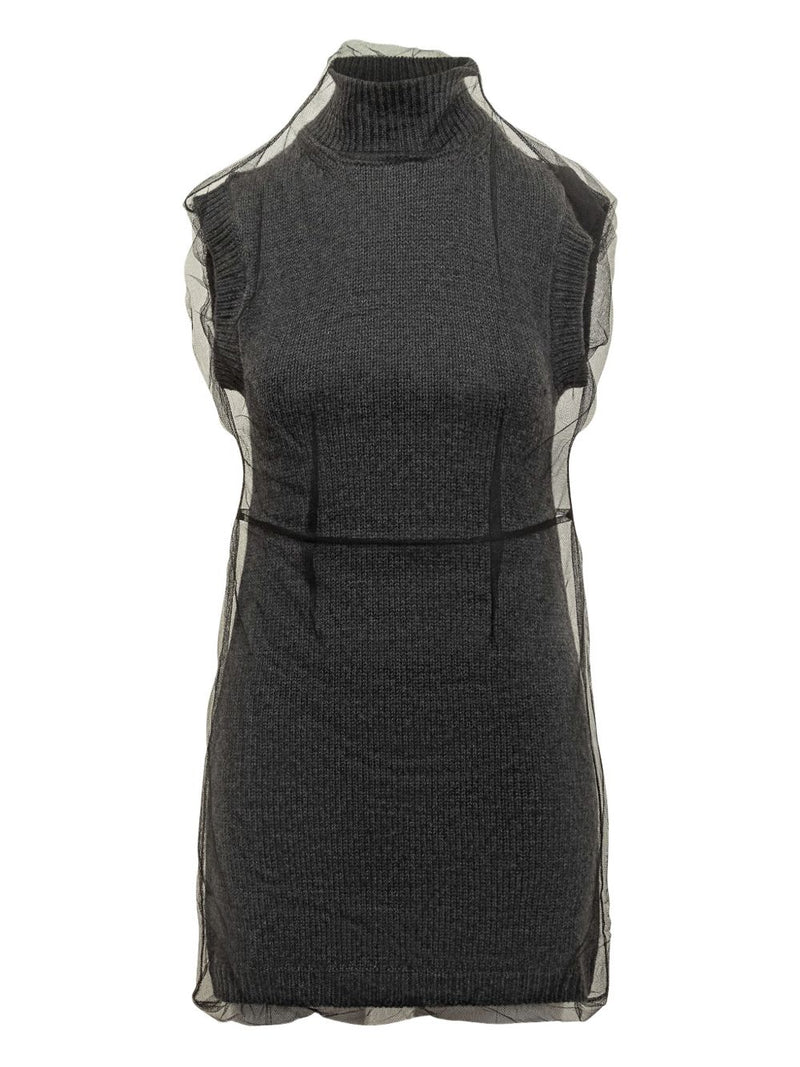 Realizzato in lana 100%, offre struttura e comfort, mentre lo strato superiore in tulle aggiunge un tocco etereo e contemporaneo che incarna perfettamente l’estetica innovativa del brand.