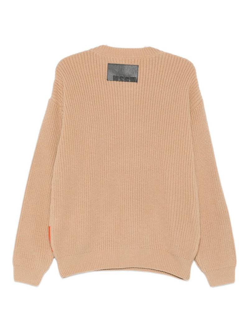 Msgm Herrenpullover in Beige mit kontrastierendem Band