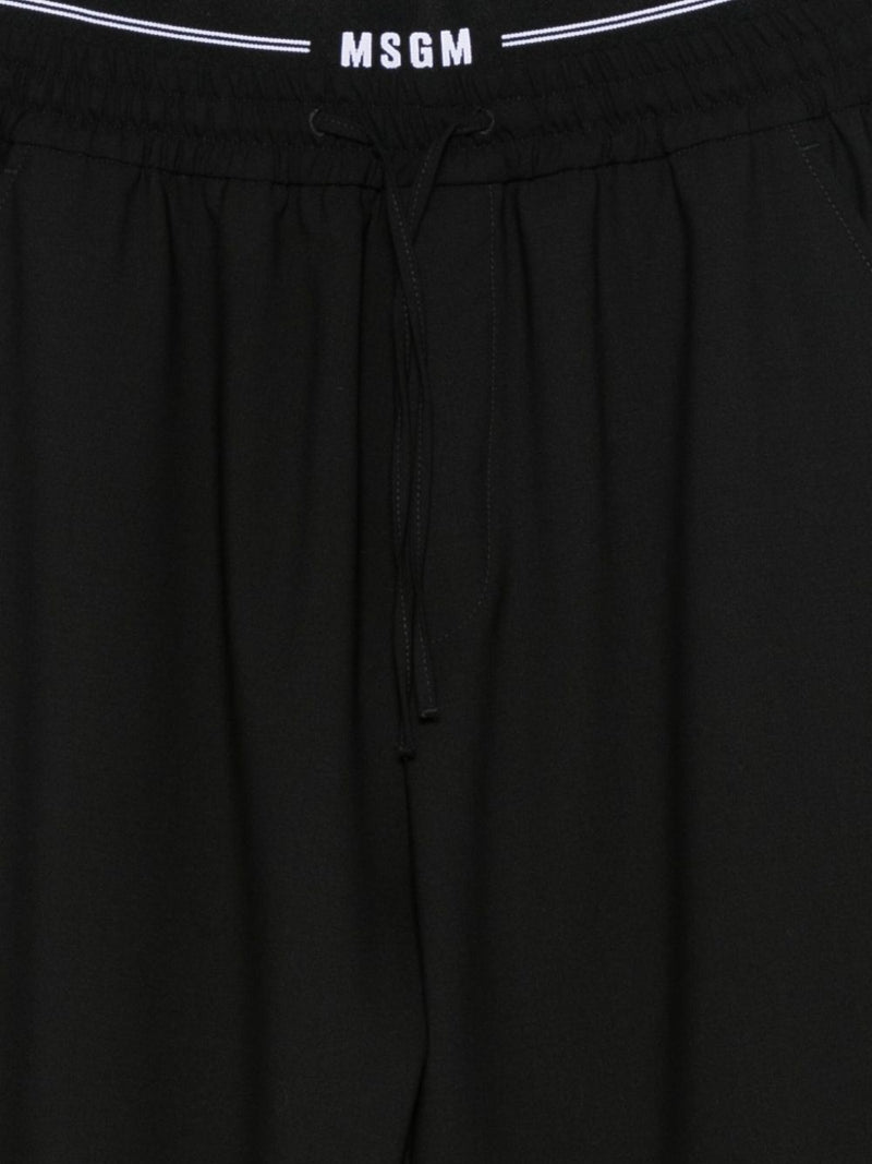 Die in Schwarz erhältlichen Hosen verfügen über einen elastischen Bund mit Kordelzug , praktische Seitentaschen und ein kontrastierendes Logo-Detail am Bein, das dem schlichten Design eine markante Note verleiht. Der gerade Schnitt macht sie zu einem vielseitigen Modell, das sich perfekt mit Sweatshirts oder Logo-T-Shirts für einen modernen MSGM-Look kombinieren lässt.