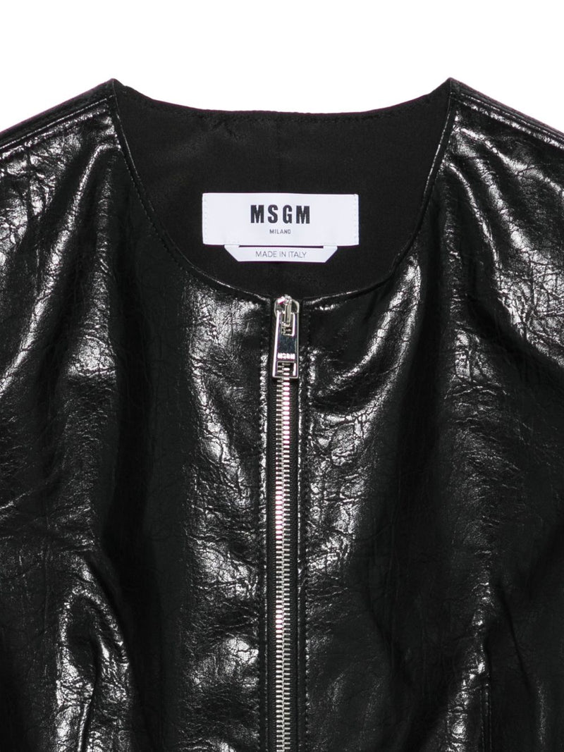 Entdecken Sie den markanten Charakter des ärmellosen MSGM-Tops mit Reißverschluss – ein ausdrucksstarkes Kleidungsstück, das modernen Stil und urbane Sinnlichkeit vereint. Gefertigt aus Viskose und Kunstfaser , besticht es durch einen edlen Ledereffekt , der die Silhouette mit einer kühnen und zugleich raffinierten Note unterstreicht.