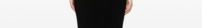L'abito nero da donna Norma Kamali unisce una linea aderente a un design scenografico a doppio strato. Il corpo dell'abito è fasciato e drappeggiato, mentre il layer esterno in tulle trasparente avvolge braccia e gambe, creando un effetto seconda pelle di forte impatto visivo.