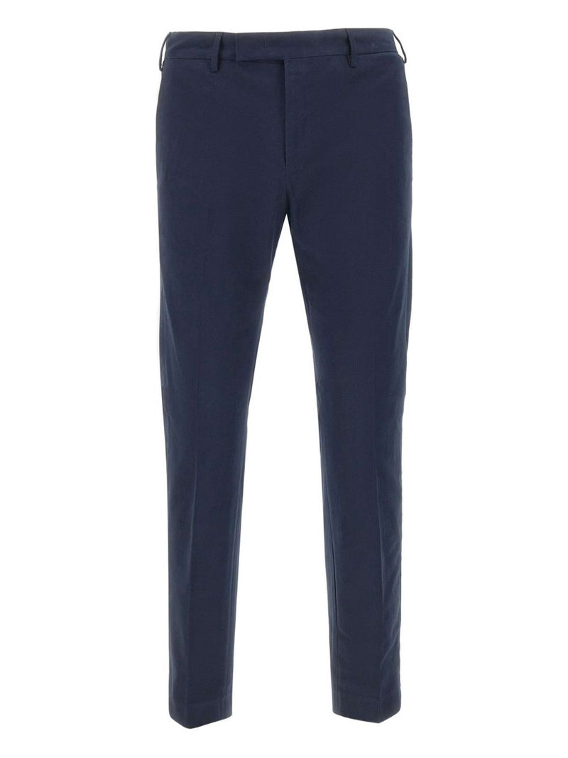 Sie sind in Marineblau erhältlich und verfügen über einen Haken- und Ösenverschluss , seitliche Leistentaschen und versteckte Gesäßtaschen für einen sauberen, raffinierten Look. Die klaren Linien und der tadellose Schnitt spiegeln die charakteristische Qualität und Liebe zum Detail von PT Torino wider und machen diesen Stil zu einem Must-have für die Garderobe eines jeden Mannes.