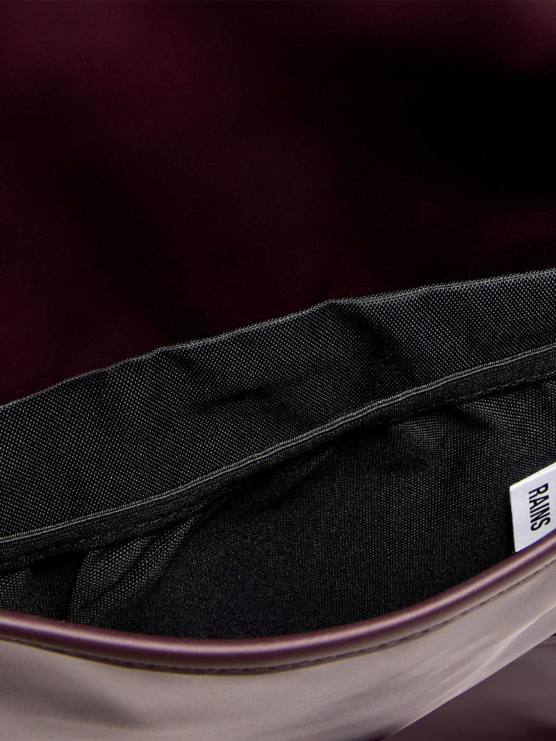 Die Tasche ist in Dunkelviolett erhältlich und verfügt über eine Klappe mit Schnallenverschluss , verstellbare Riemen und einen Tragegriff für bequemes Tragen. Dank ihrer kompakten Größe ist sie ideal für alle, die einen cleanen, urbanen Stil suchen, ohne auf die Funktionalität von Rains verzichten zu müssen.