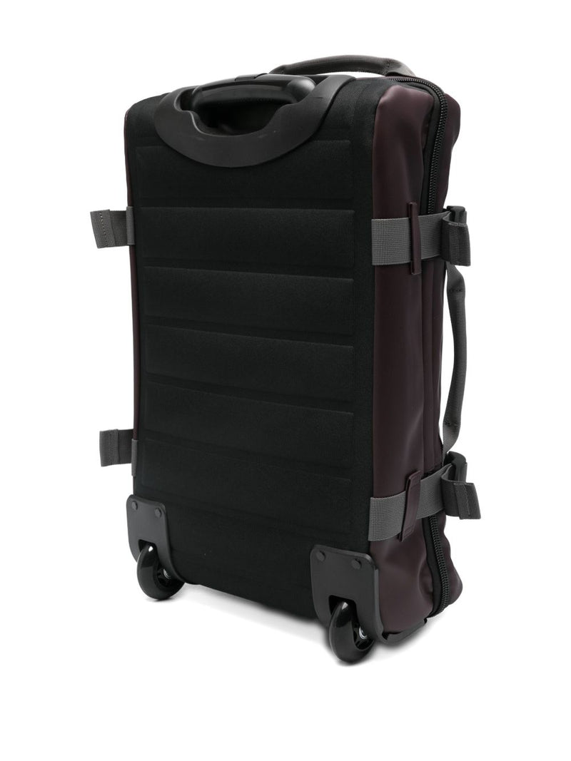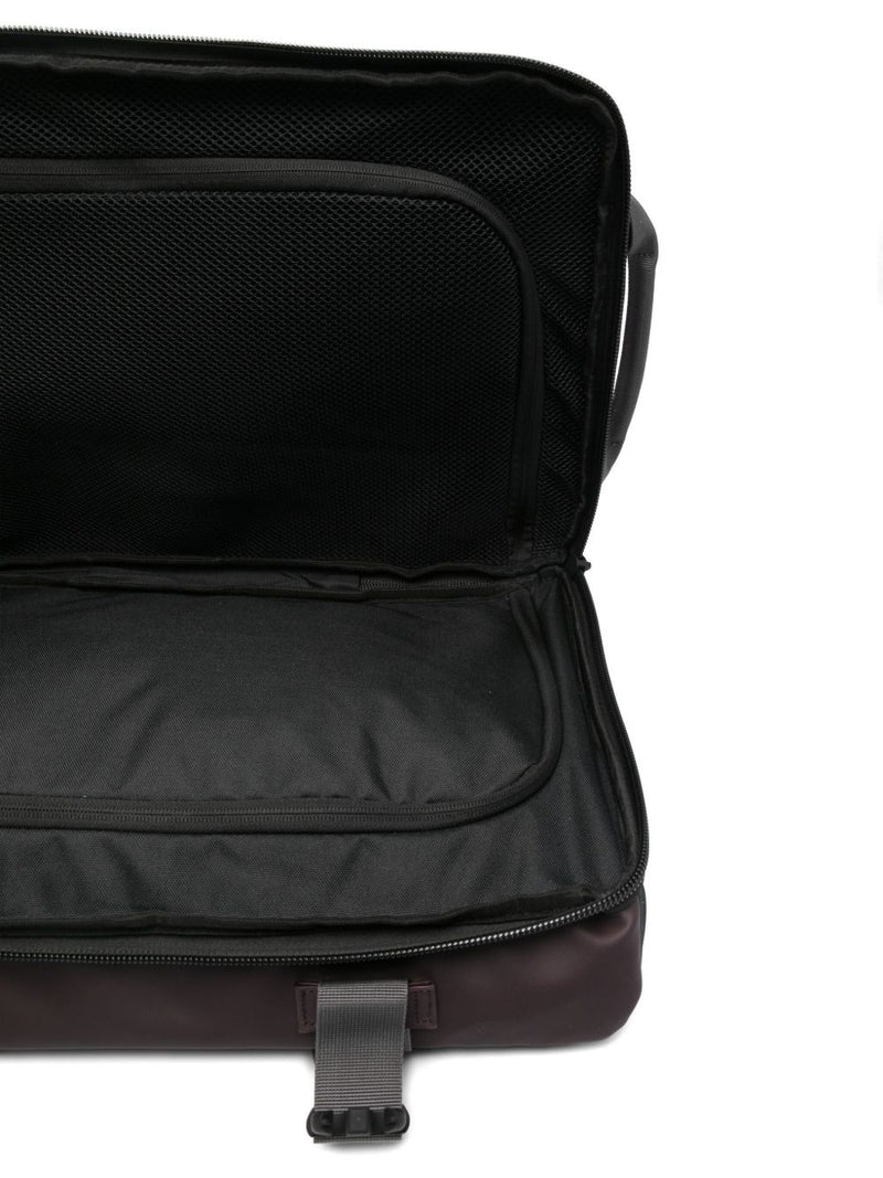 Die Tasche ist in Lila erhältlich und verfügt über einen Logo-Print auf der Vorderseite , flache Tragegriffe oben und an den Seiten , einen ausziehbaren Griff sowie zwei Rollen für einen leichten und bequemen Transport. Der umlaufende Reißverschluss , die elastischen Innengurte und der Schnallenverschluss gewährleisten Funktionalität und Sicherheit, während das durch Reißverschlusstaschen unterteilte Innenfach optimale Organisation ermöglicht.