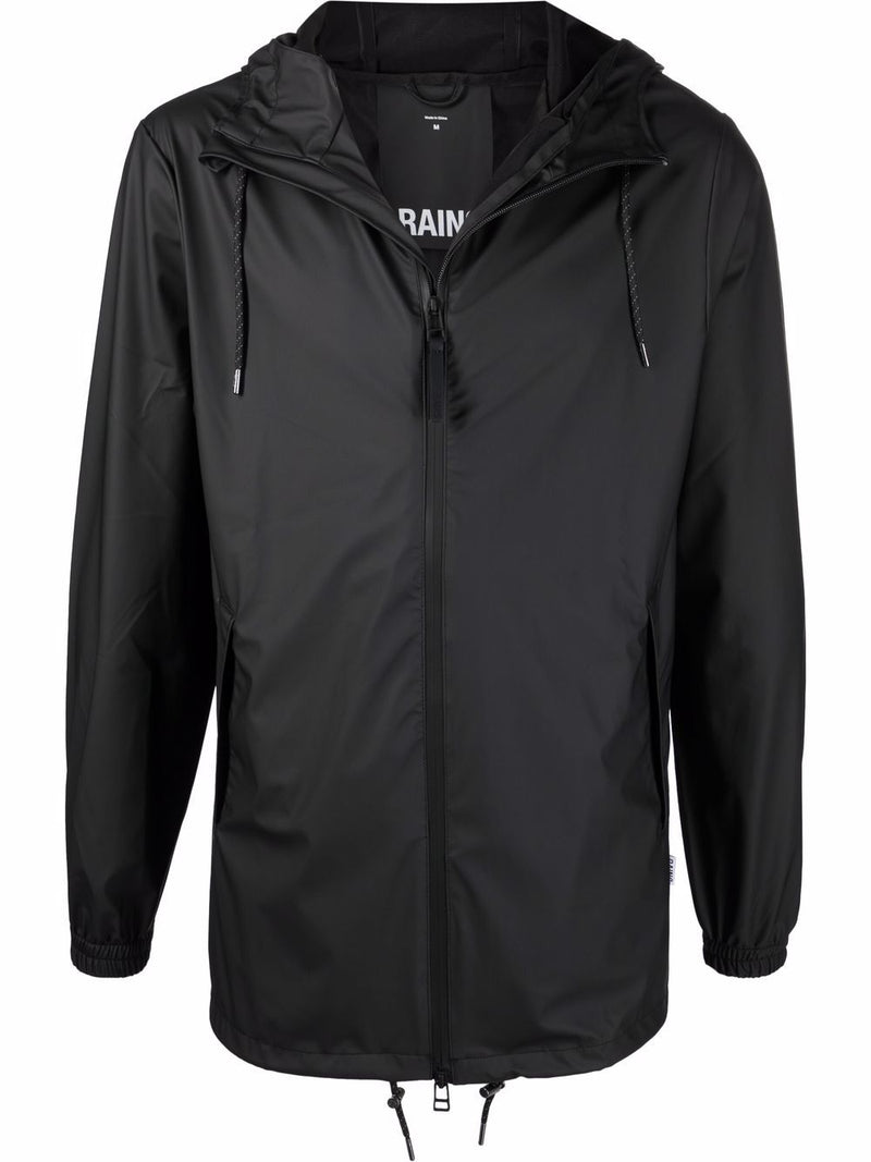 Die Jacke ist in Schwarz erhältlich und verfügt über eine verstellbare Kapuze mit Kordelzug , einen Reißverschluss vorne und einen Kordelzug am Saum für eine individuelle Passform. Zwei Leistentaschen vorne und eine aufgesetzte Tasche sorgen für Funktionalität und Stil und machen sie zu einem unverzichtbaren Kleidungsstück für die Garderobe von Rains.