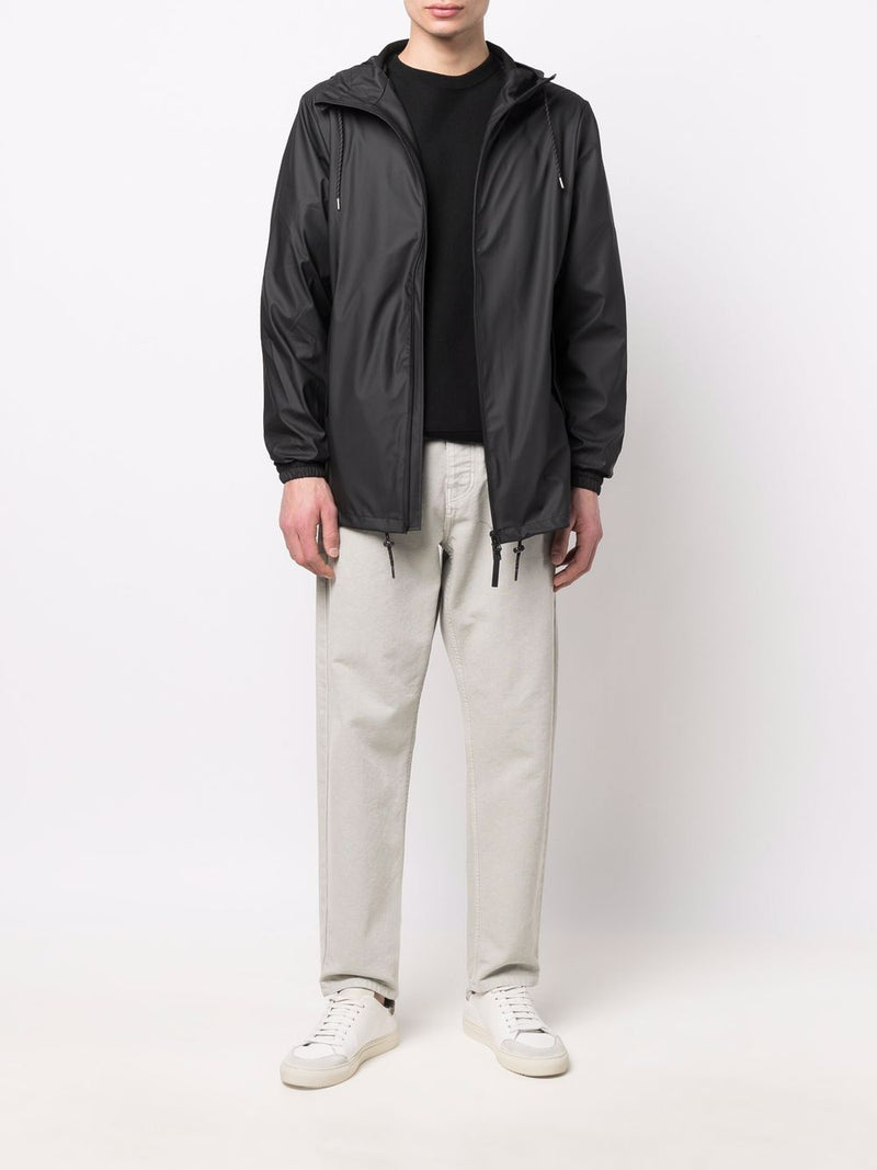 Schwarzer Unisex-Regenmantel mit Kapuze von Rains