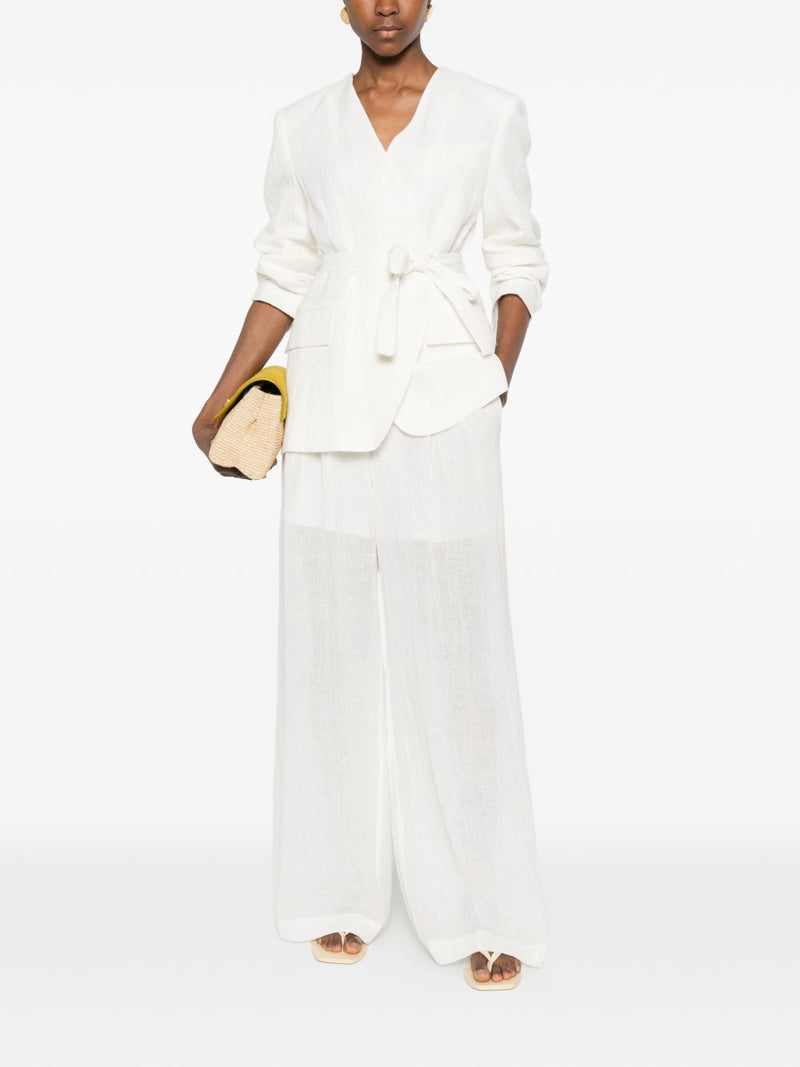 Il blazer Su Blazer Bianco Donna esprime uno stile essenziale e contemporaneo, valorizzato dalla tonalità panna che illumina la silhouette. Il design senza revers e lo scollo pulito creano una linea minimale, mentre la cintura in vita consente di definire la figura con eleganza.