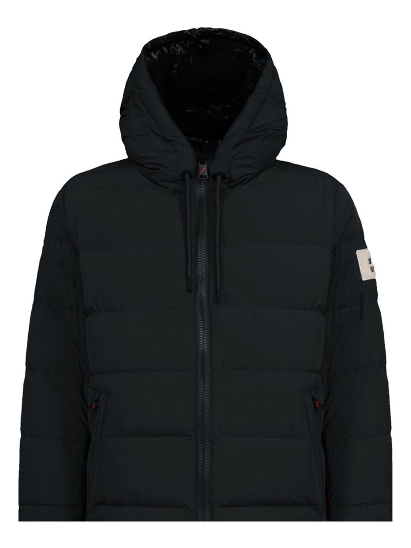 The After Label Verbier men's jacket in black is designed to offer maximum warmth without sacrificing contemporary style. Crafted from matte technical nylon and padded with a blend of 90% down and 10% feathers, it provides thermal insulation and lightweight comfort.