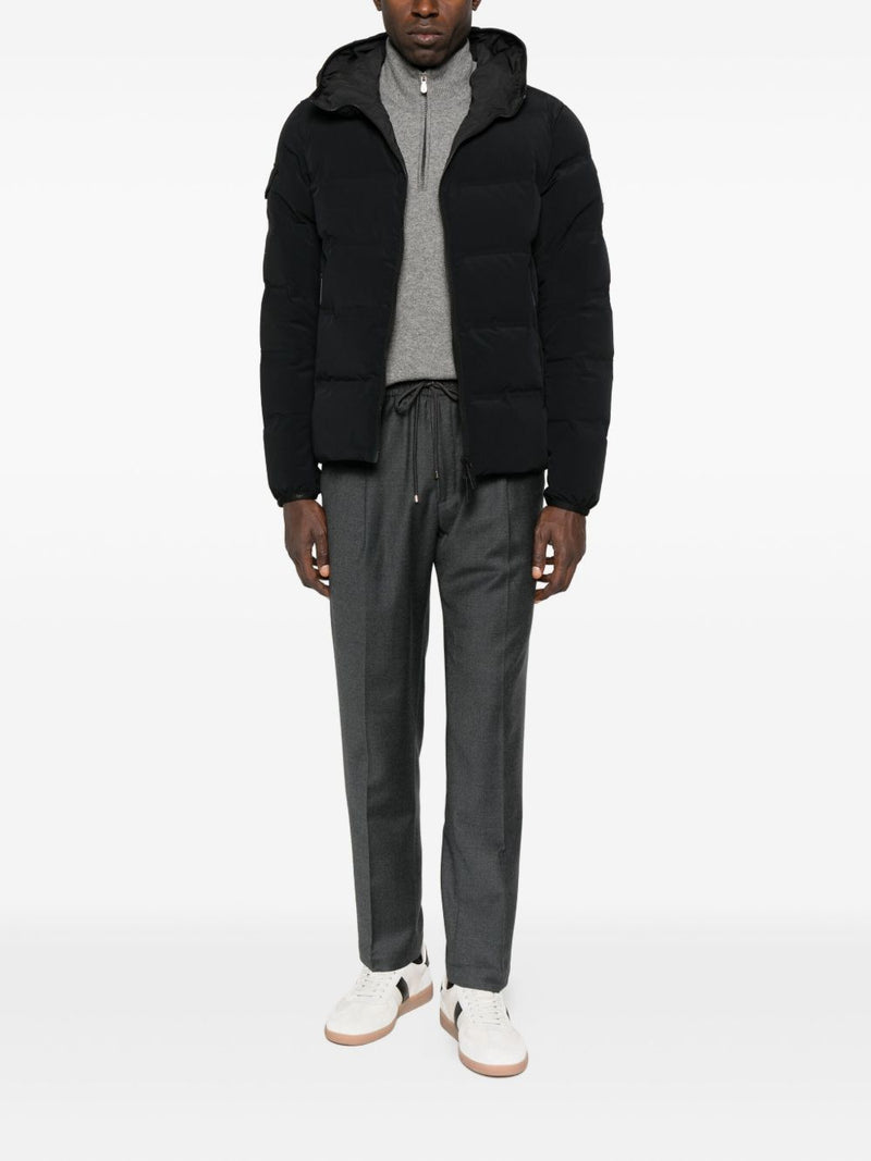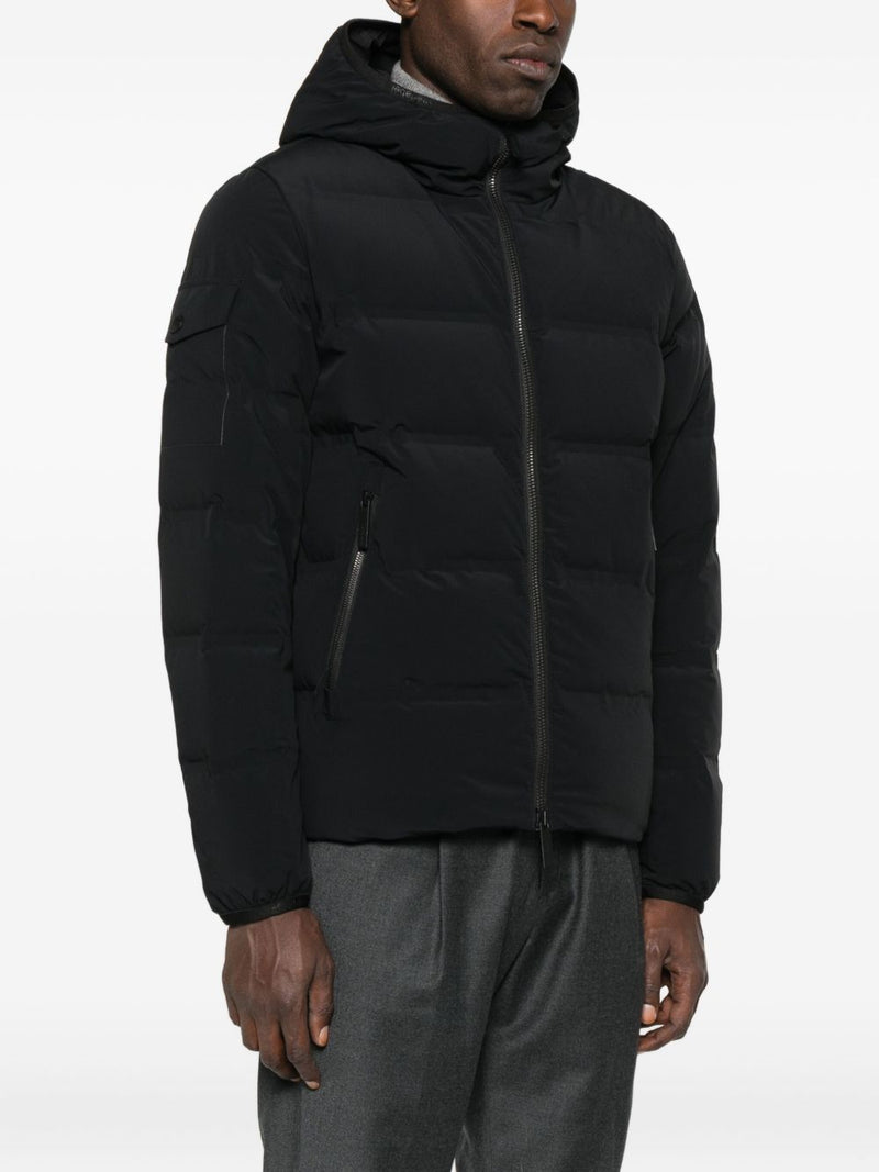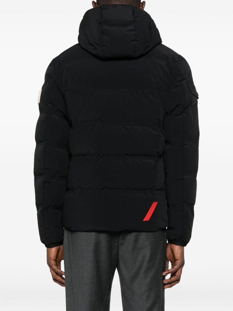 Featuring a fixed hood , a two-way front zip, and side pockets with heat-sealed closures , this down jacket stands out for its functionality and contemporary look. The embroidered "after label" patch on the sleeve and the removable red tag on the side add to the brand's iconic character.