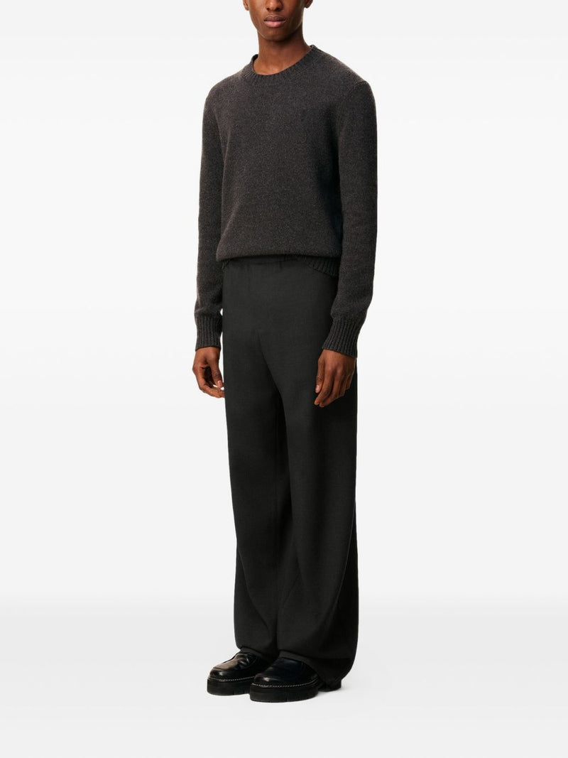 The Ami Paris Men's wide-leg trousers in dark grey perfectly balance comfort and sophistication . Crafted from a blend of polyester and virgin wool , these trousers ensure a fluid fit and impeccable drape.