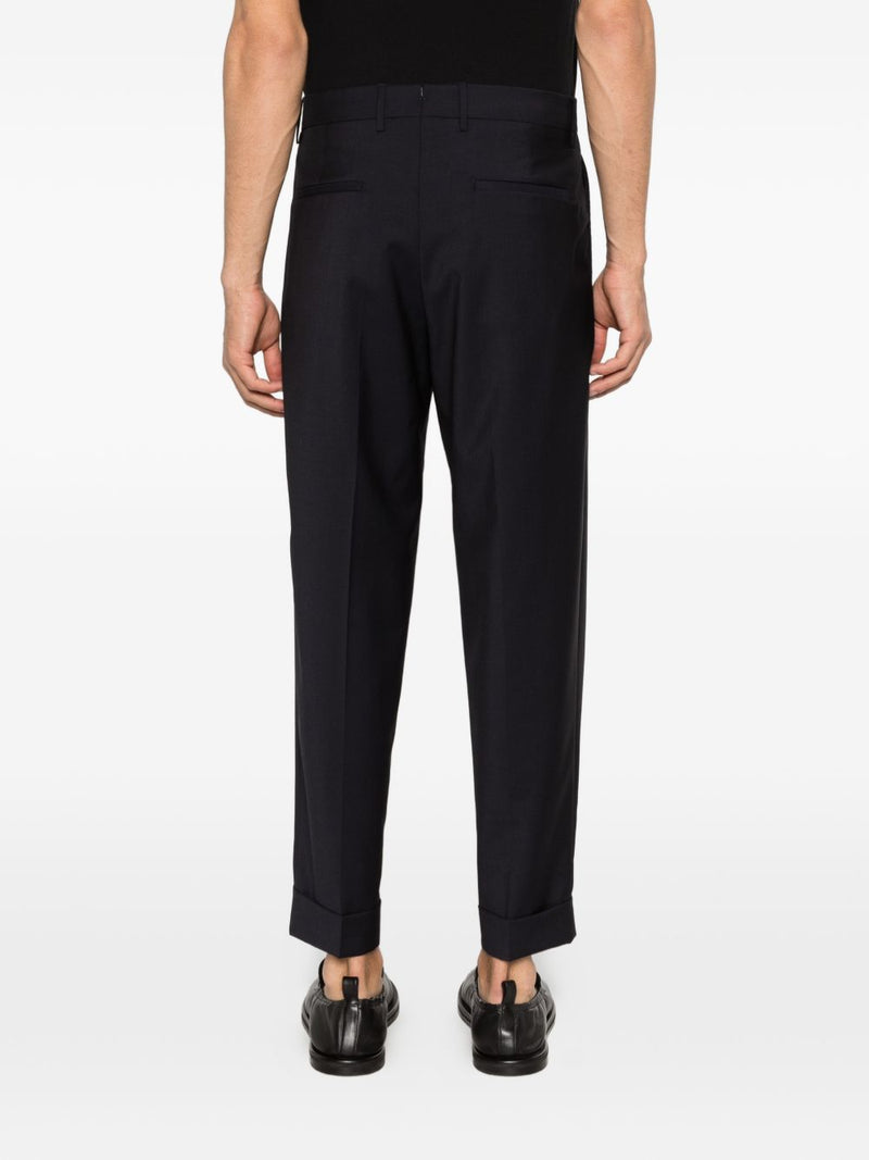 I pantaloni Chiaia di Berwich in colore blu navy uniscono gusto sartoriale e versatilità, ideali per outfit formali e smart casual. Le pence frontali valorizzano la linea del capo, mentre il fondo con risvolto dona un tocco classico e raffinato.