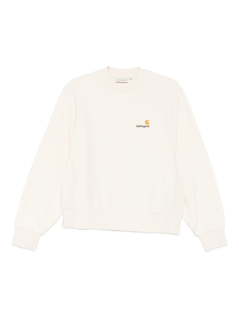 The Carhartt WIP women's ecru sweatshirt with embroidered logo is a clean, contemporary essential designed to combine comfort and urban style . Crafted from a soft cotton and polyester blend , it stands out for its ecru shade and subtle logo , which adds a distinctive touch without sacrificing versatility.
