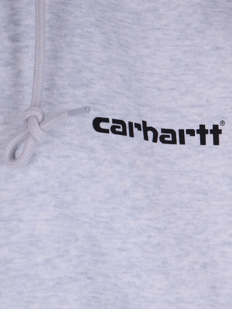 La Felpa con cappuccio e zip di Carhartt WIP in tonalità grigio melange è il capo ideale per chi cerca praticità e uno stile grafico deciso. Questo modello si distingue per la comoda chiusura frontale con zip, che permette di indossarla facilmente a strati, e per l'accattivante motivo con logo stampato sulla parte posteriore, che dona un tocco contemporaneo al design minimalista del brand.