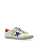 A style icon with timeless charm: the men's Golden Goose Super-Star with sku GMF00101F006839_10317 are back in a visually striking version, with a white base embellished with a blue star on the side and a red heel that adds a bold touch.