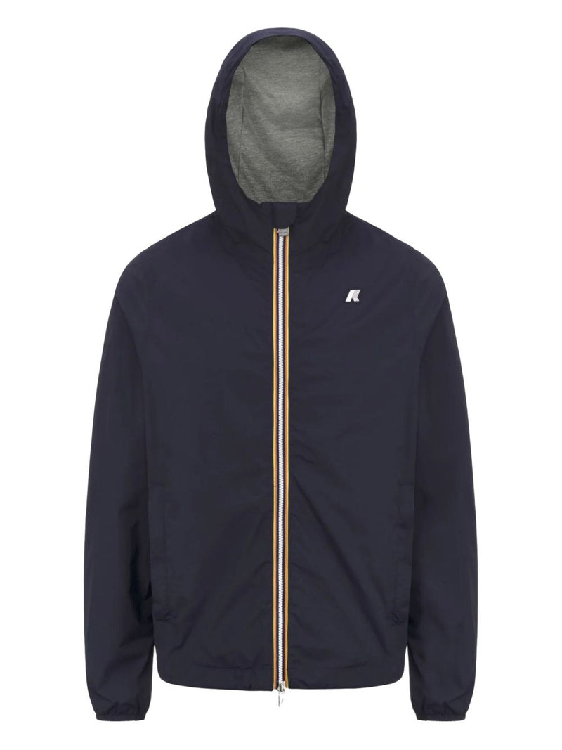 The interior is designed for unprecedented comfort: the front and back are lined with soft melange grey cotton jersey, ensuring a pleasant thermal sensation against the skin. The garment's technicality is highlighted by taped seams and a ventilation cut on the back, which ensures optimal moisture management. Functional details complete the design, such as the adjustable hood, drawstring hem, and the iconic K-Way multicolor tape applied internally, a distinctive sign of a timeless stylistic heritage.