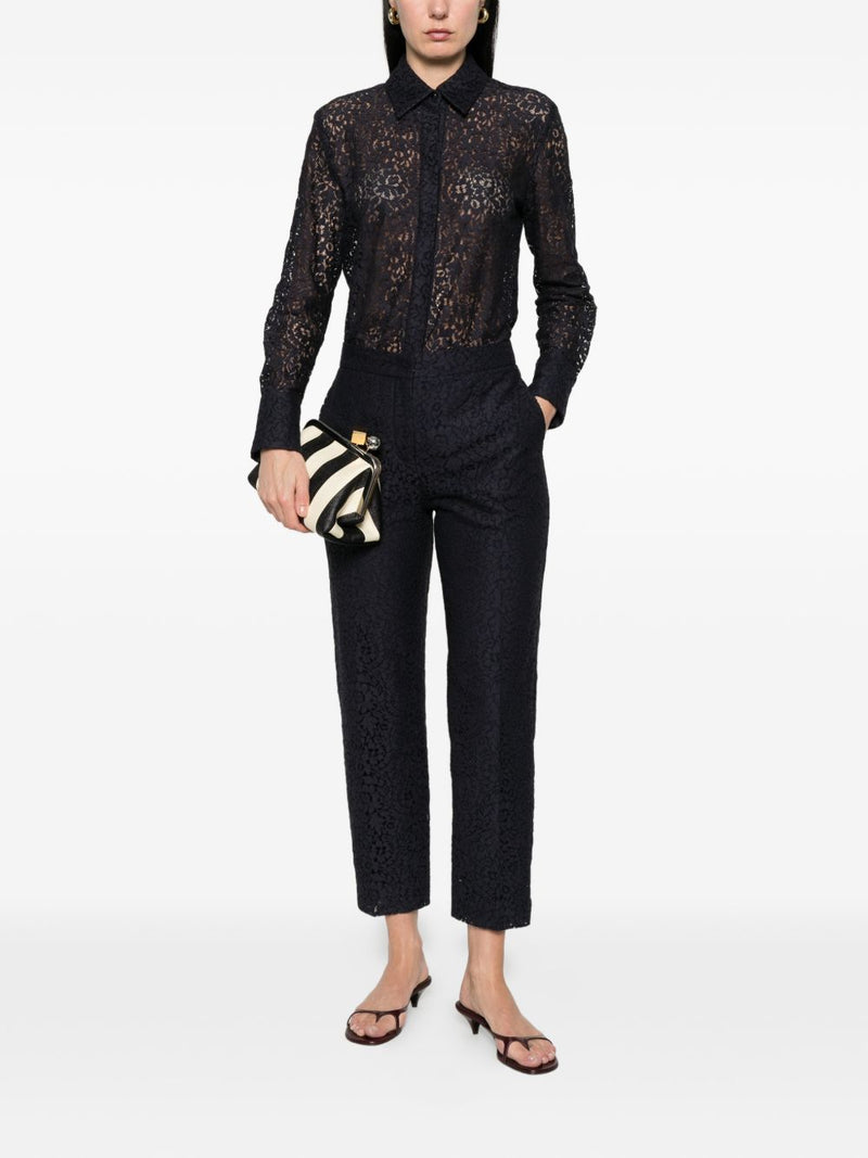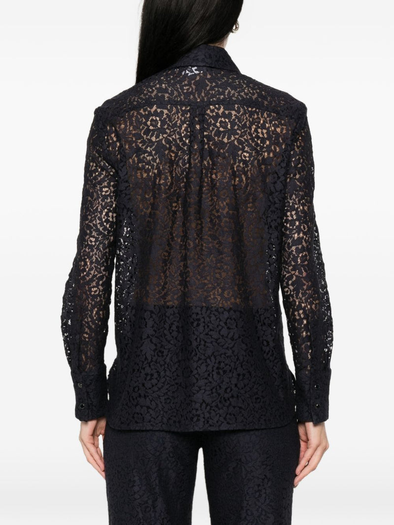 - Design/Stile: camicia a maniche lunghe con colletto classico e motivo floreale traforato