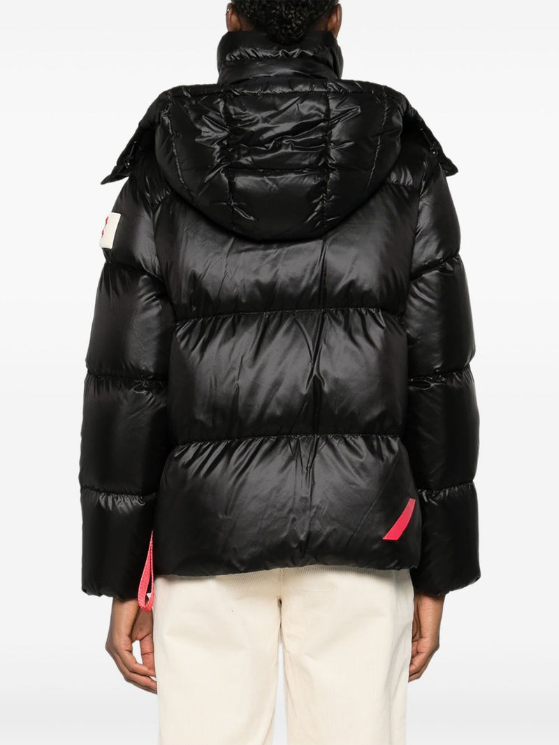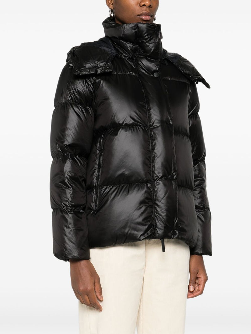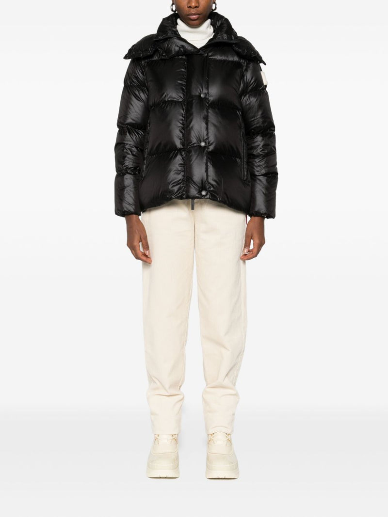 Realizzato in nylon lucido effetto laccato con imbottitura in piuma d’anatra, offre il massimo comfort termico con un look moderno. Il design è arricchito da un cappuccio removibile, dettagli funzionali come la chiusura a zip doppio cursore e le tasche laterali con zip.