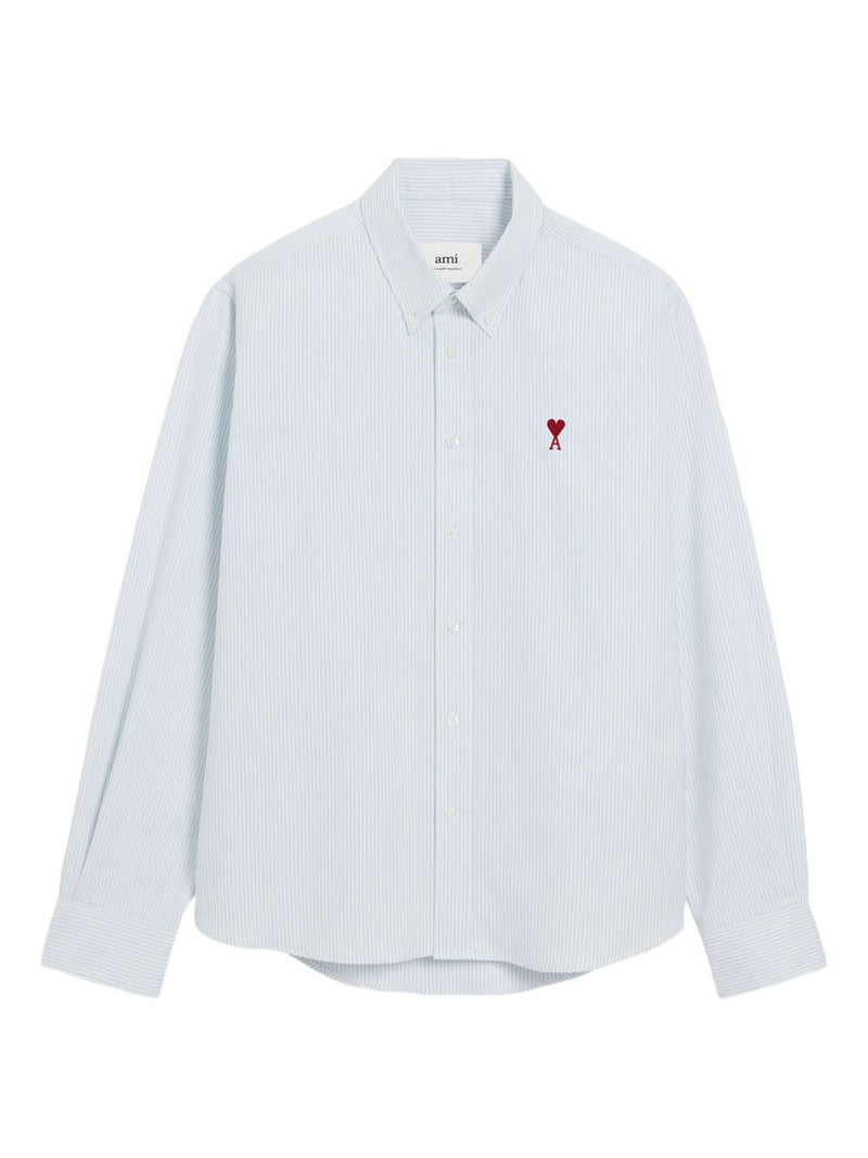 Il motivo a righe sottili dona un tocco classico ma contemporaneo, mentre il ricamo Ami de Cœur sul petto aggiunge un elemento iconico e distintivo. Il colletto button-down e la vestibilità regular rendono questa camicia perfetta per look sia casual che eleganti. Rifinita con polsini regolabili e fondo stondato, è un capo perfetto per ogni guardaroba maschile.