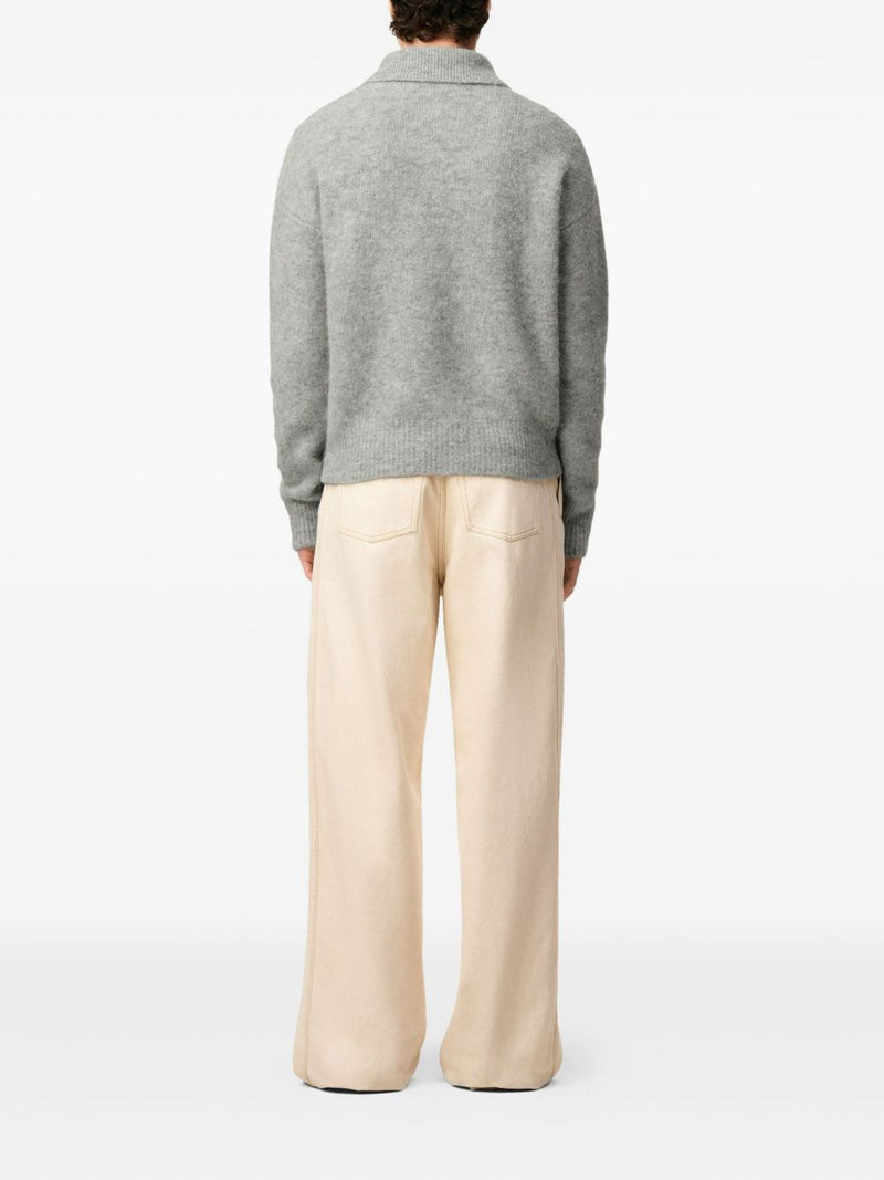 Ami Paris Polo Uomo Maglia Grigia Lana con Maniche Lunghe