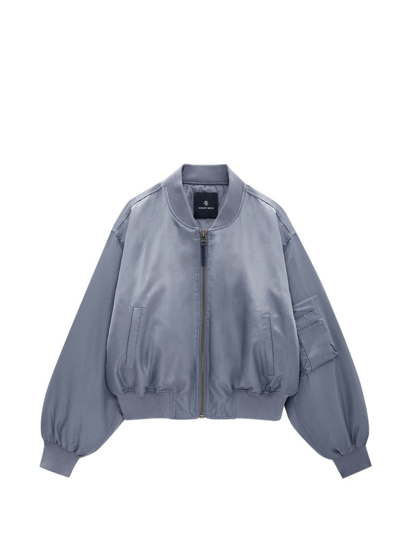 Il giubbotto grigio donna Anine Bing propone una silhouette bomber contemporanea, con volume morbido sulle maniche e bordi a costine che definiscono la linea. La superficie liscia e leggermente lucida valorizza il colore dark grey, donando un carattere urbano e sofisticato.