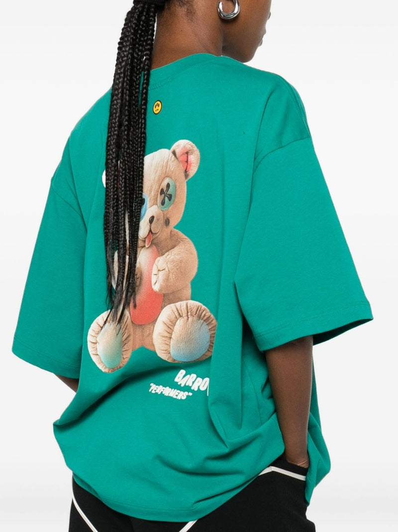 Scopri la T-shirt con stampa Teddy Barrow, un capo iconico che combina ironia e stile urbano. Realizzata in tessuto 100%, offre una texture morbida e leggera, ideale per un comfort quotidiano senza rinunciare al carattere distintivo del brand.